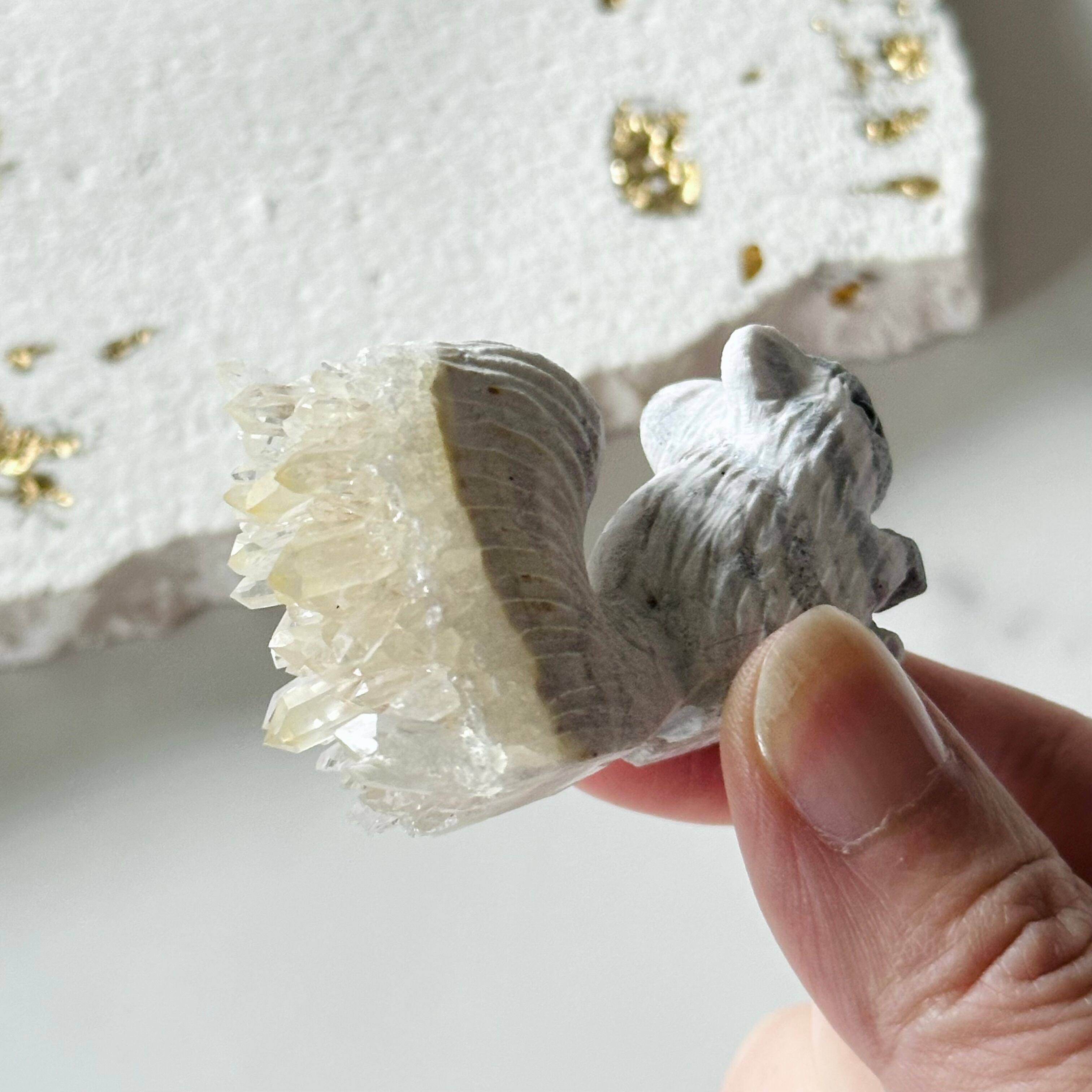水晶クラスターもとても綺麗で、ミクロな結晶の各所に虹が宿りキラキラと輝きます。