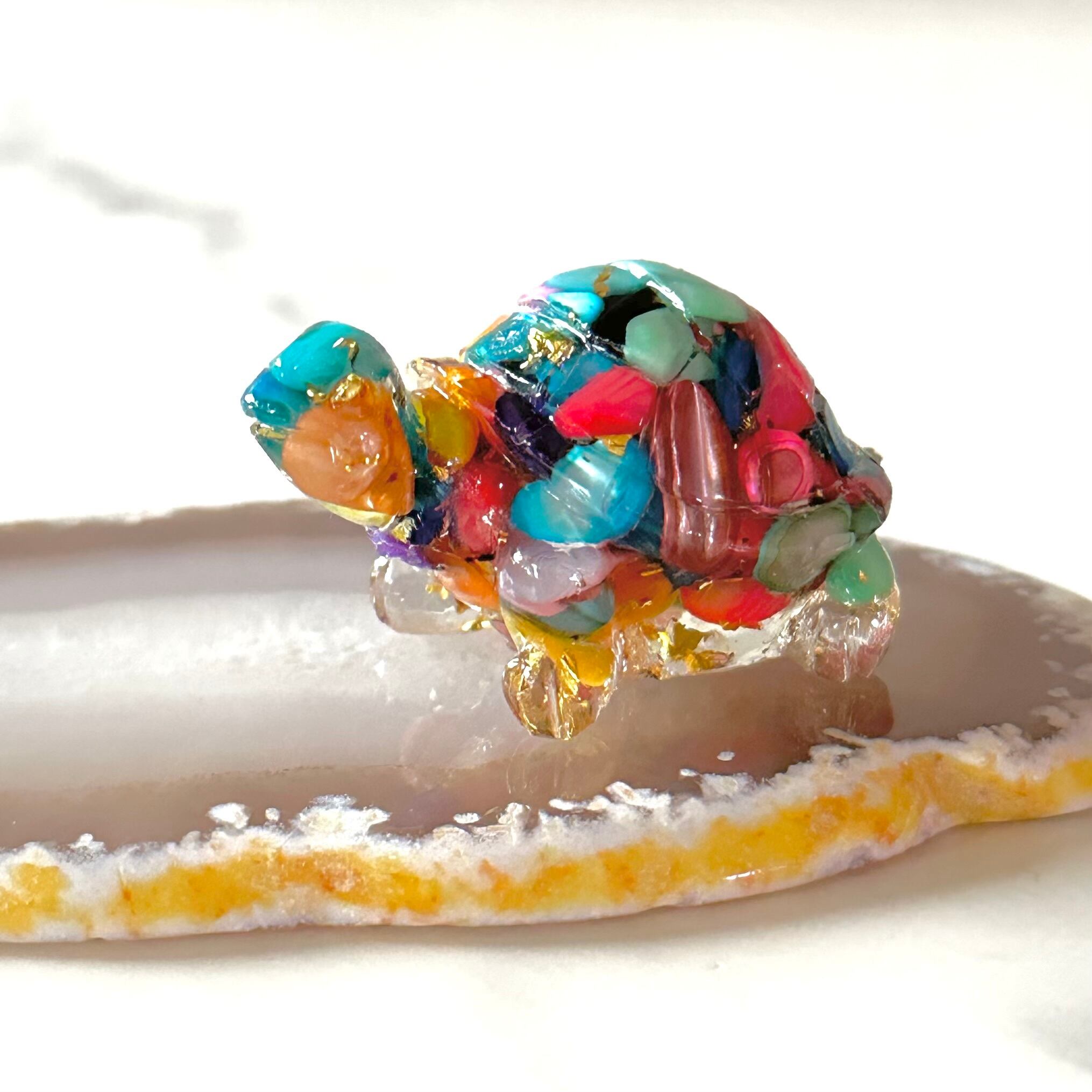 アコヤ貝(パールシェル)に染色をして樹脂で固めた可愛い亀さんです。