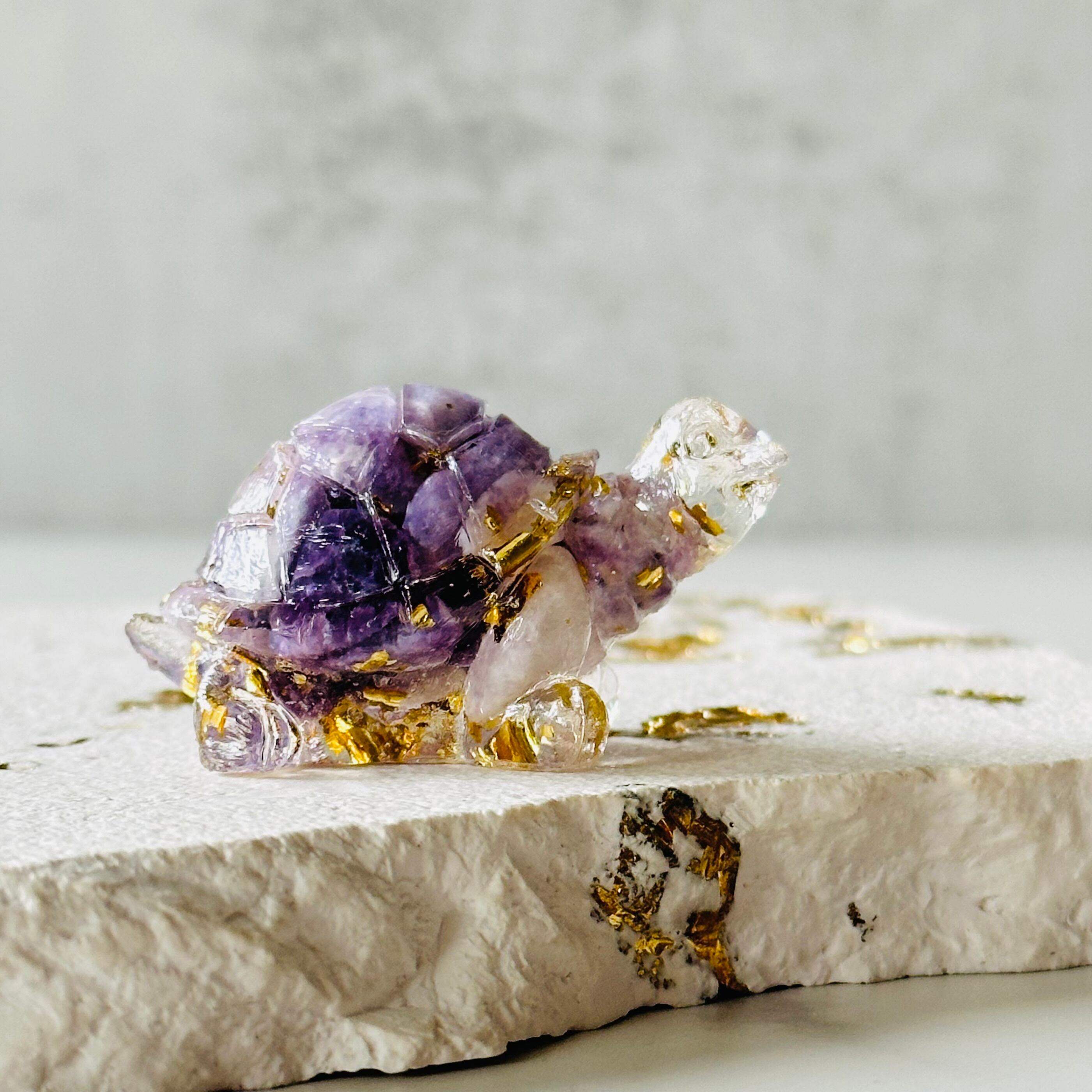 アメジストのカケラを樹脂で固めた可愛い亀さんです。