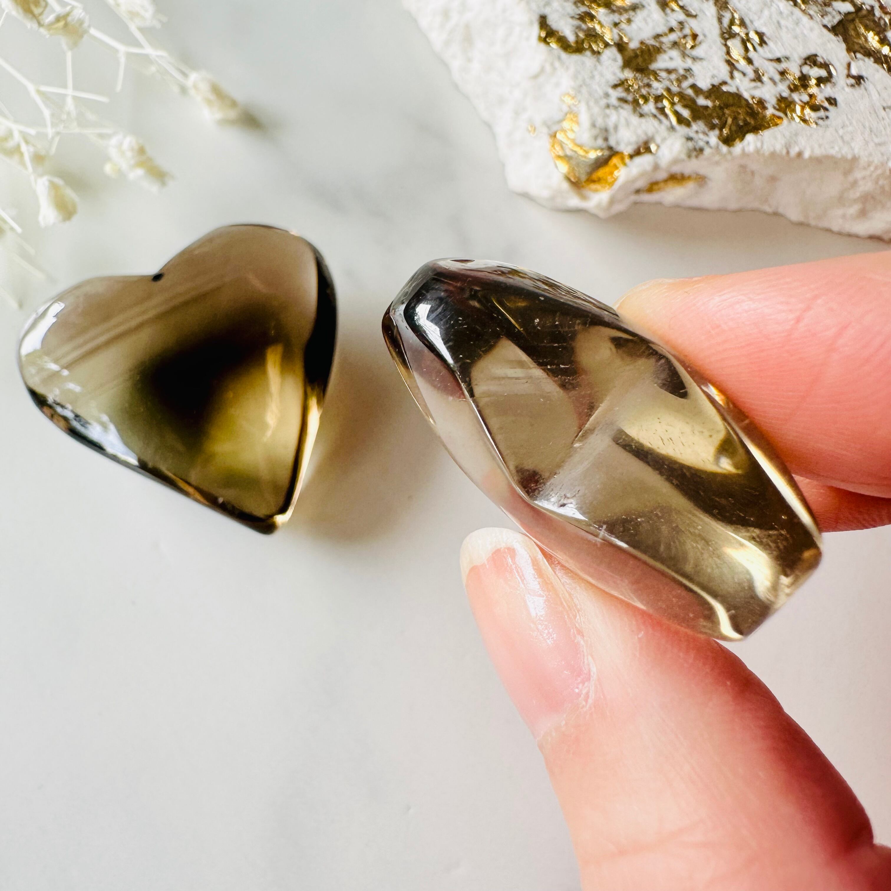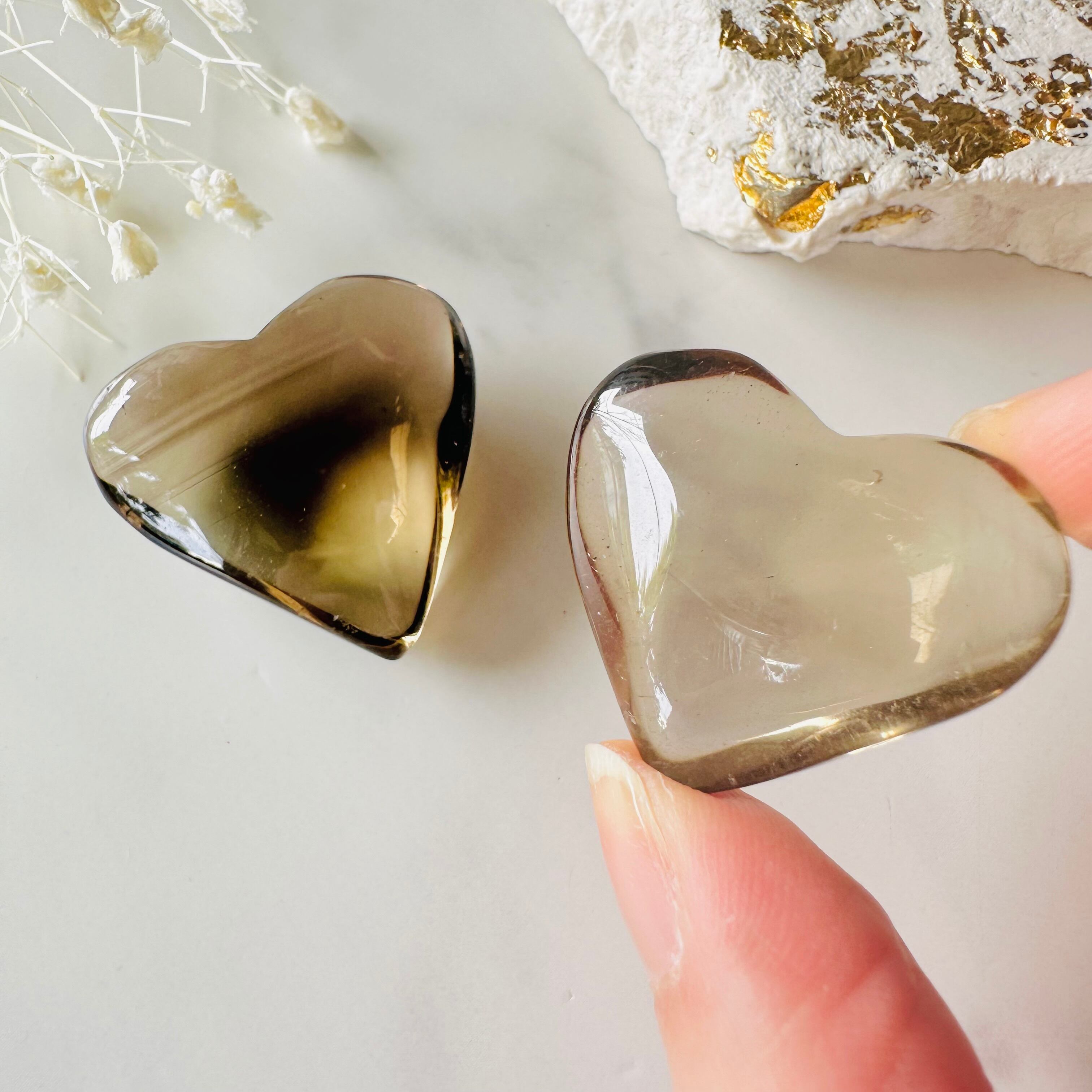 スモーキーシトリンのハート型ストーンです。透明感たっぷりで艶があり、スモーキーなニュアンスカラーが魅力的です。ぷっくりと厚みのあるフォルムが可愛らしいアイテムです。
