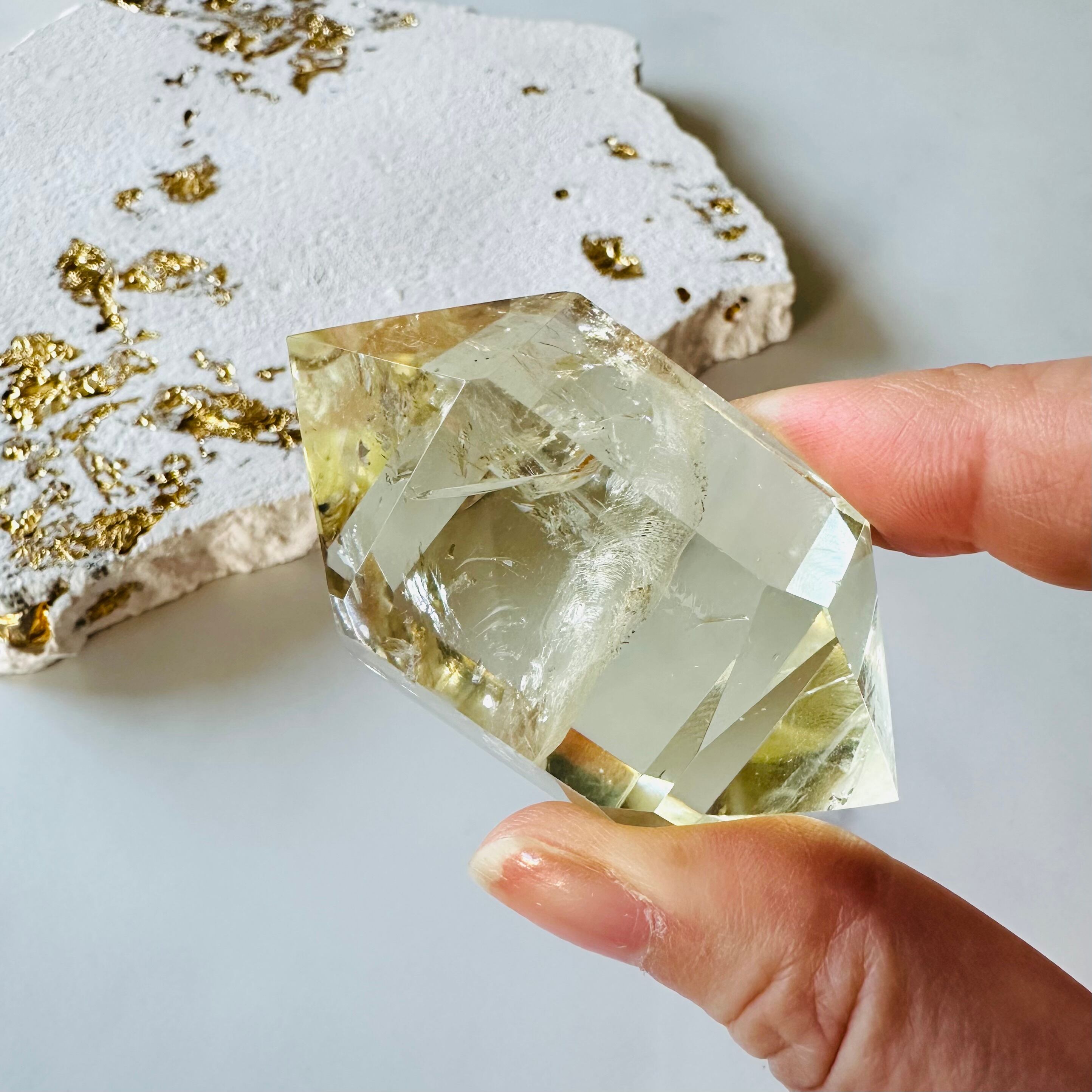 形状はダブルポイント、あるいはダブルターミネイティッドと言われるもので、両端が尖った形をしています。片側の先端から悪い気を吸収し、内部で浄化して反対側からクリアな気を放出すると言われており、場の浄化や、メンタルバランスを整える効果があります。