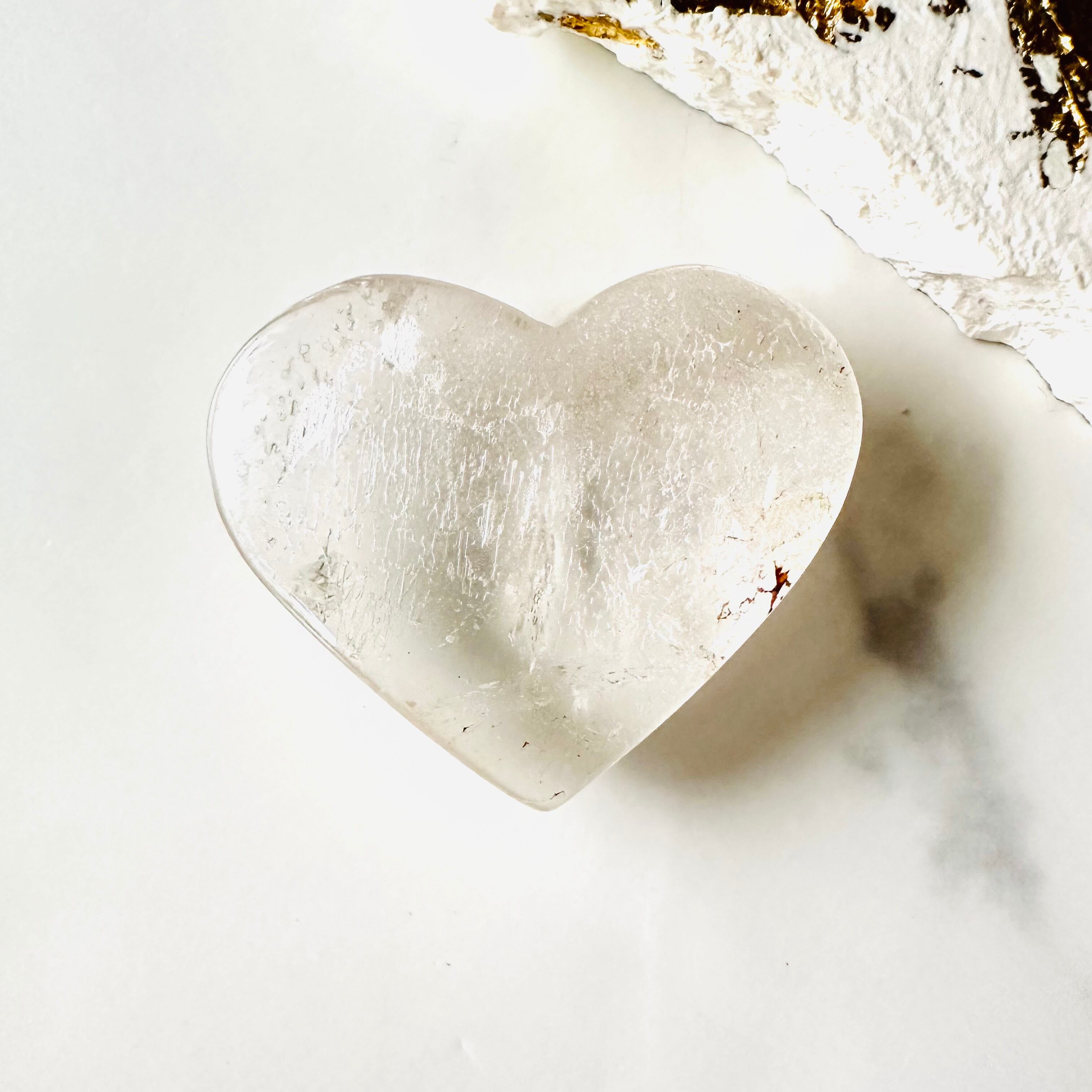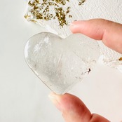 みずみずしいクリアクォーツ(水晶)のハート型ストーンです。内部の微細なクラックに光が反射してとても綺麗です。透明感のある優しい光は疲れた心にそっと寄り添い癒してくれるかのようです。