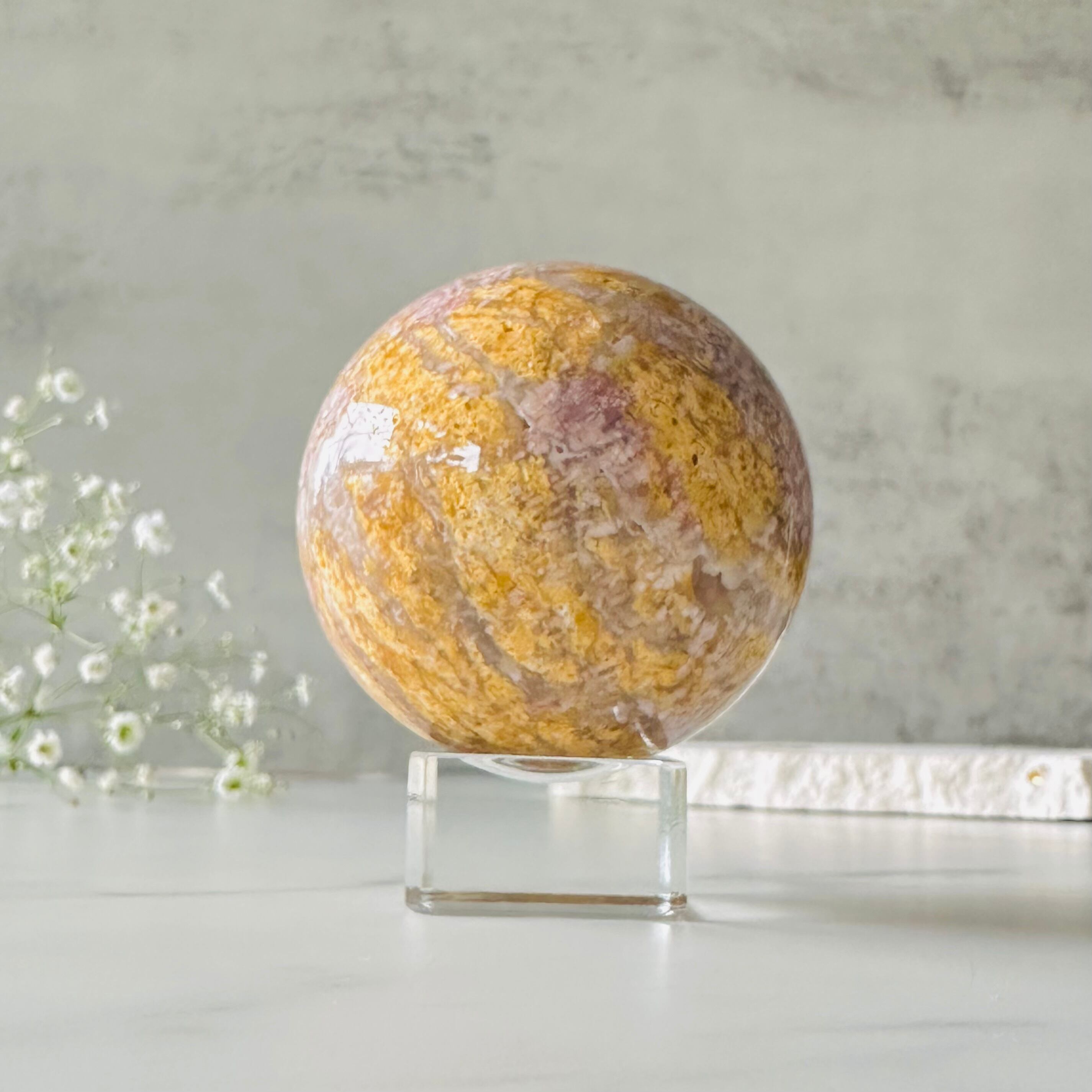 当店初登場の新しいストーンです。鉱物としての詳しい情報は不明ですが、細かい石の模様は桜やミモザをギュッと集めて花束にしたような、明るく可愛らしい雰囲気が魅力的です。