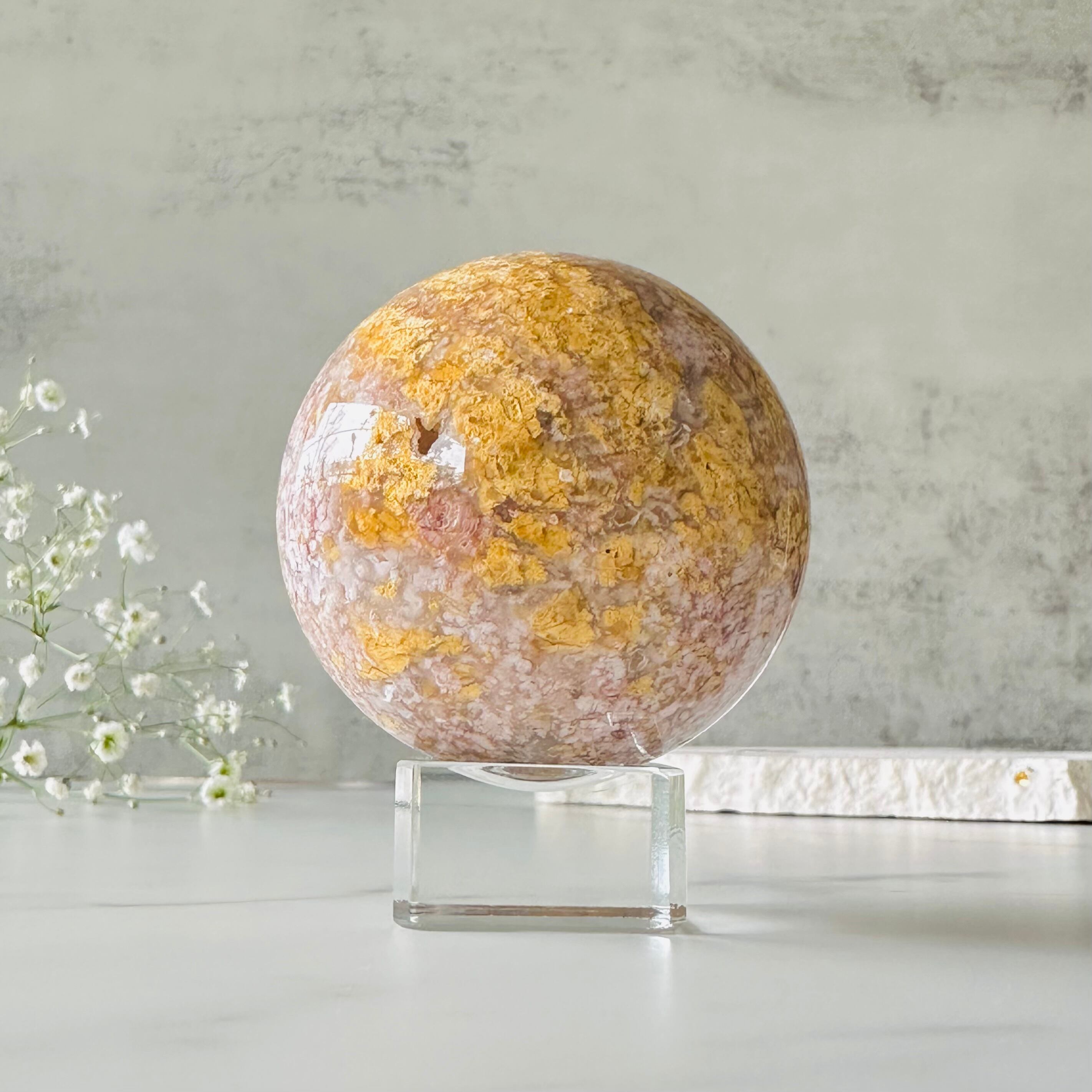 綺麗なピンクとオレンジのフィッシュシードスフィア。
