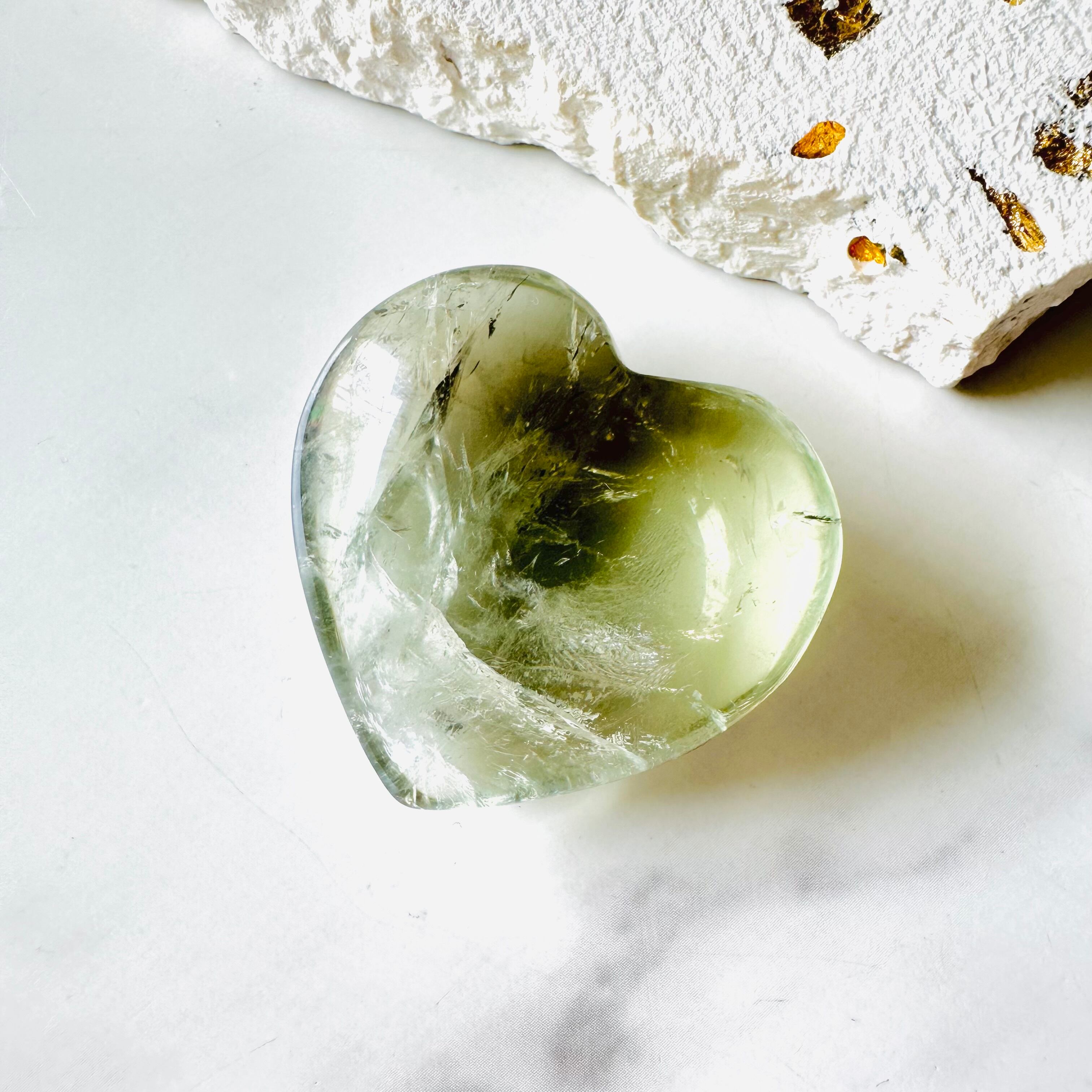 ごく淡い透明感のあるグリーンの瑞々しさが魅力的です。高貴な美しさを持つプラシオライトは、持ち主の存在感を高め、成熟した女性の美しいオーラを最大限に引き出します。高価な石なのでルースで見かけることが多く、このサイズのパームやハートはあまり流通していないように思います。