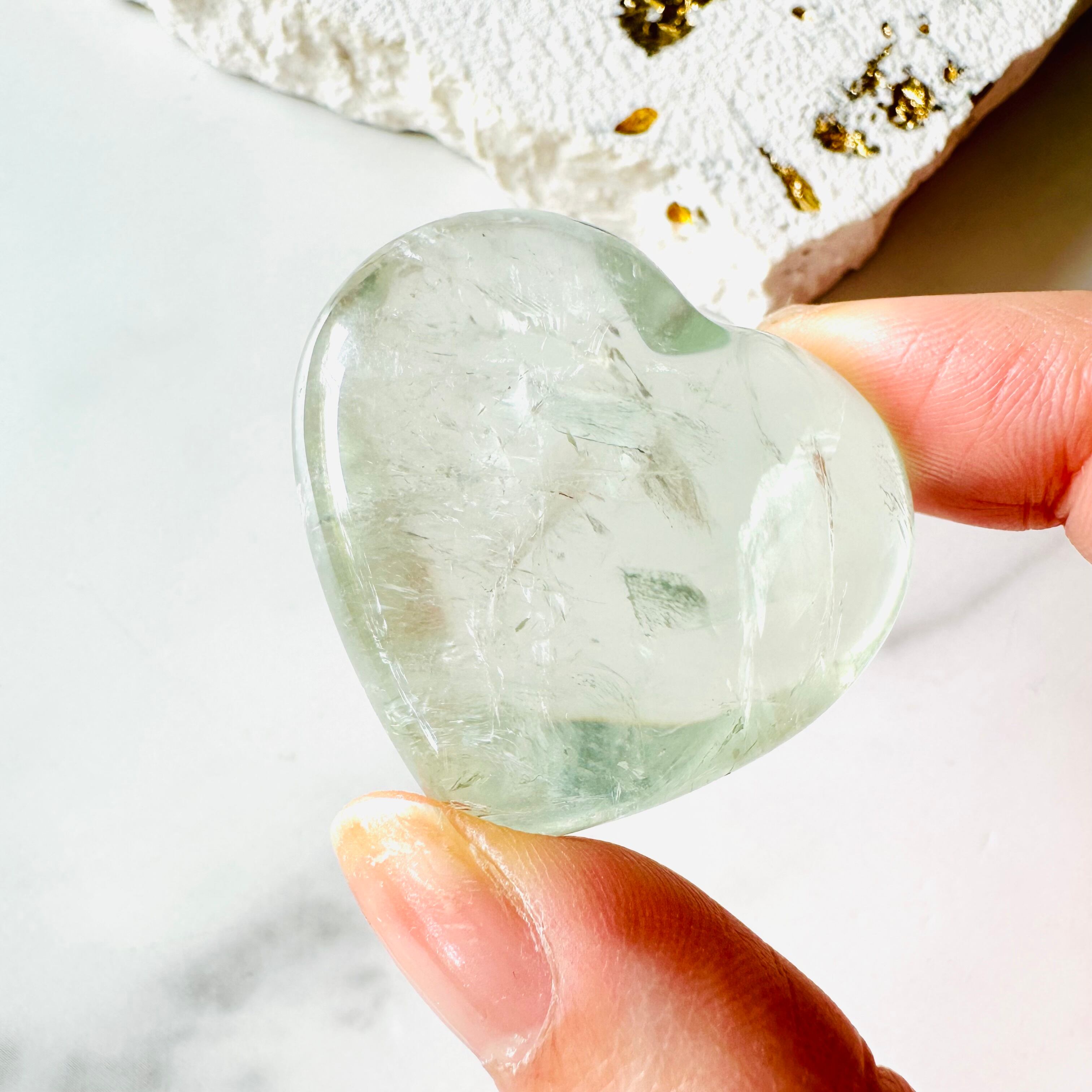 ごく淡い透明感のあるグリーンの瑞々しさが魅力的です。高貴な美しさを持つプラシオライトは、持ち主の存在感を高め、成熟した女性の美しいオーラを最大限に引き出します。高価な石なのでルースで見かけることが多く、このサイズのパームやハートはあまり流通していないように思います。