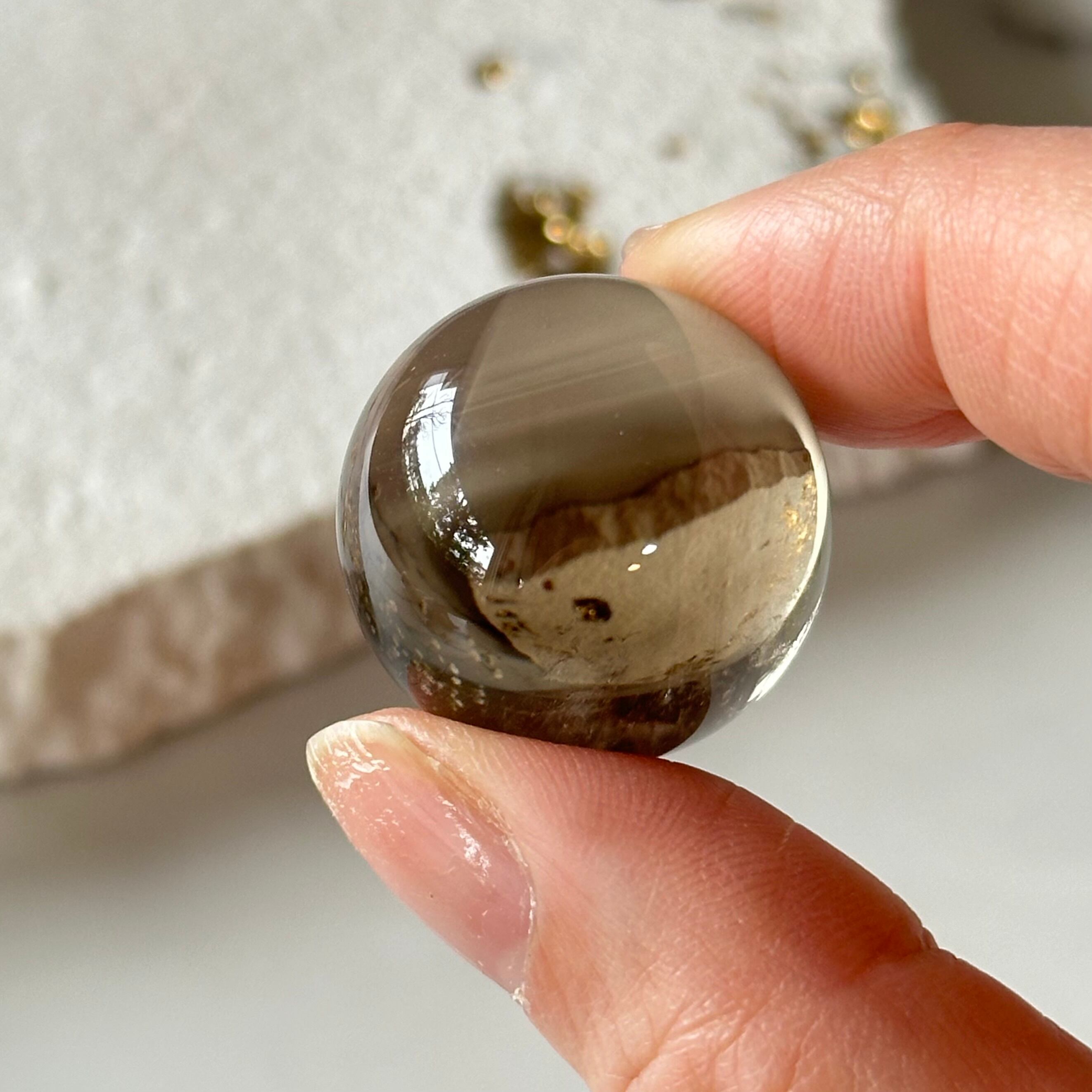 クォーツの中に幻影のような模様がみられる石です。「幽霊水晶(ゴーストクリスタル)」ともよばれます。成長の歴史を刻んできたことから、「成長」「前進」「向上」の象徴とされ、持ち主の能力や才能を伸ばしてくれる力があるといわれています。