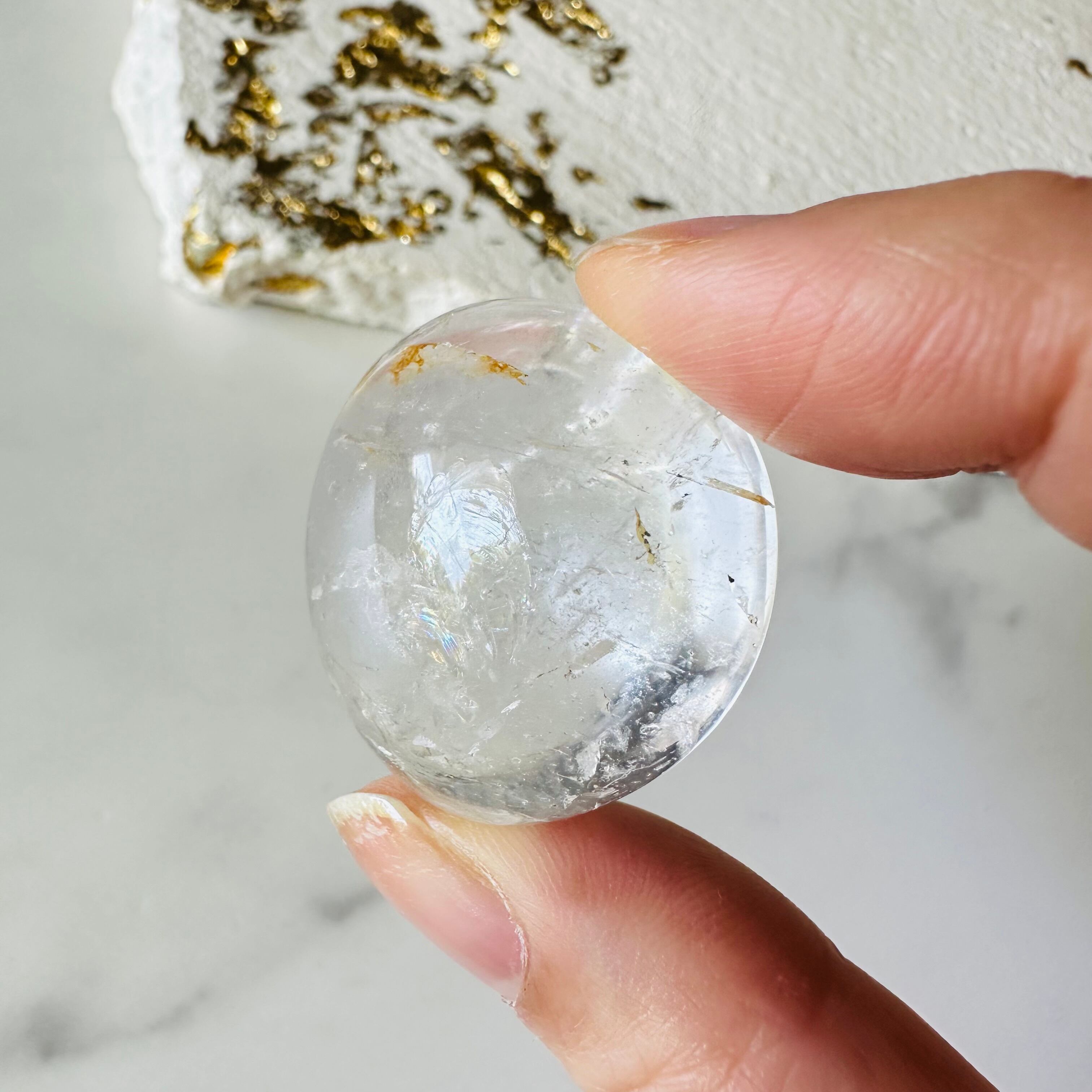 黄色い部分はわずかに入ったゴールデンヒーラー。虹も入った綺麗なタンブルです。