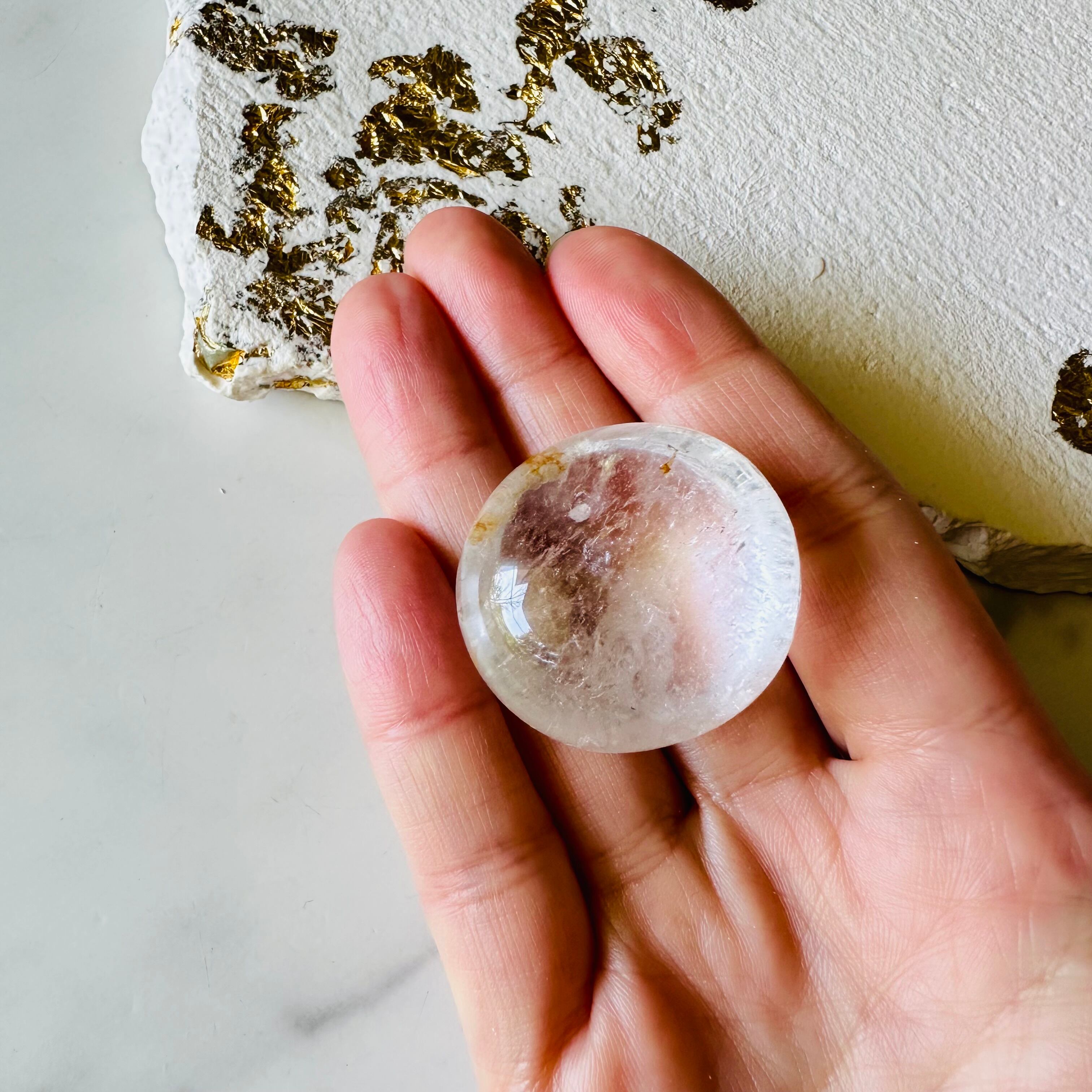 ころんと丸い形が可愛いクリアクォーツのタンブルです。