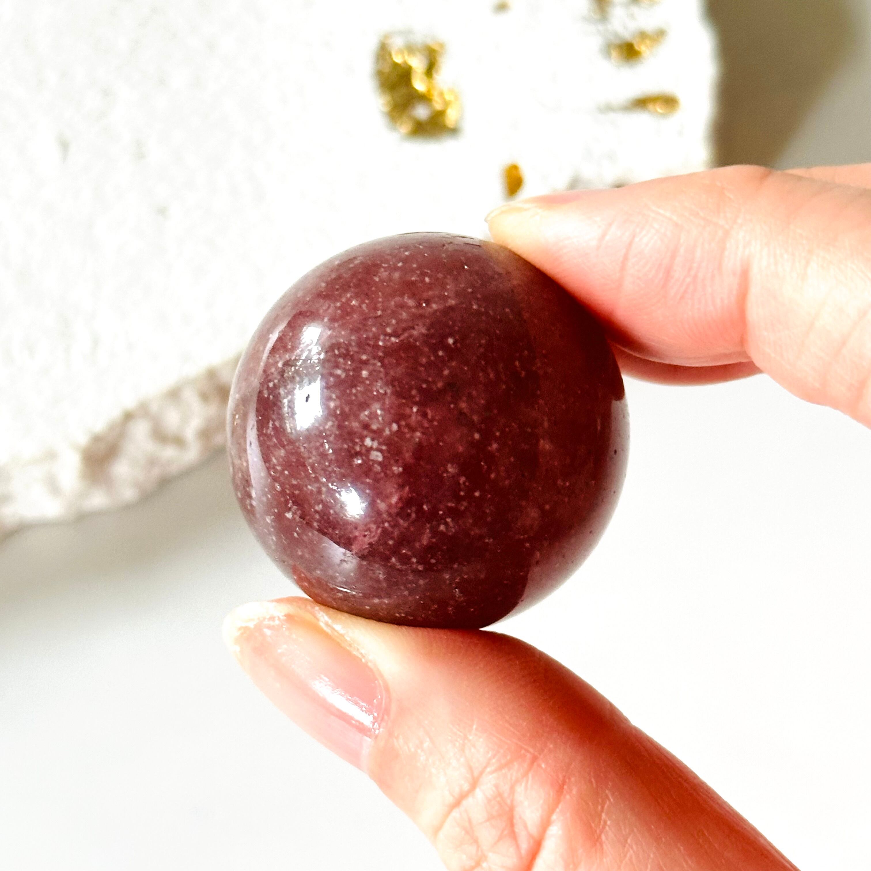 苺ジャムのような色合いのストロベリークォーツスフィアです。