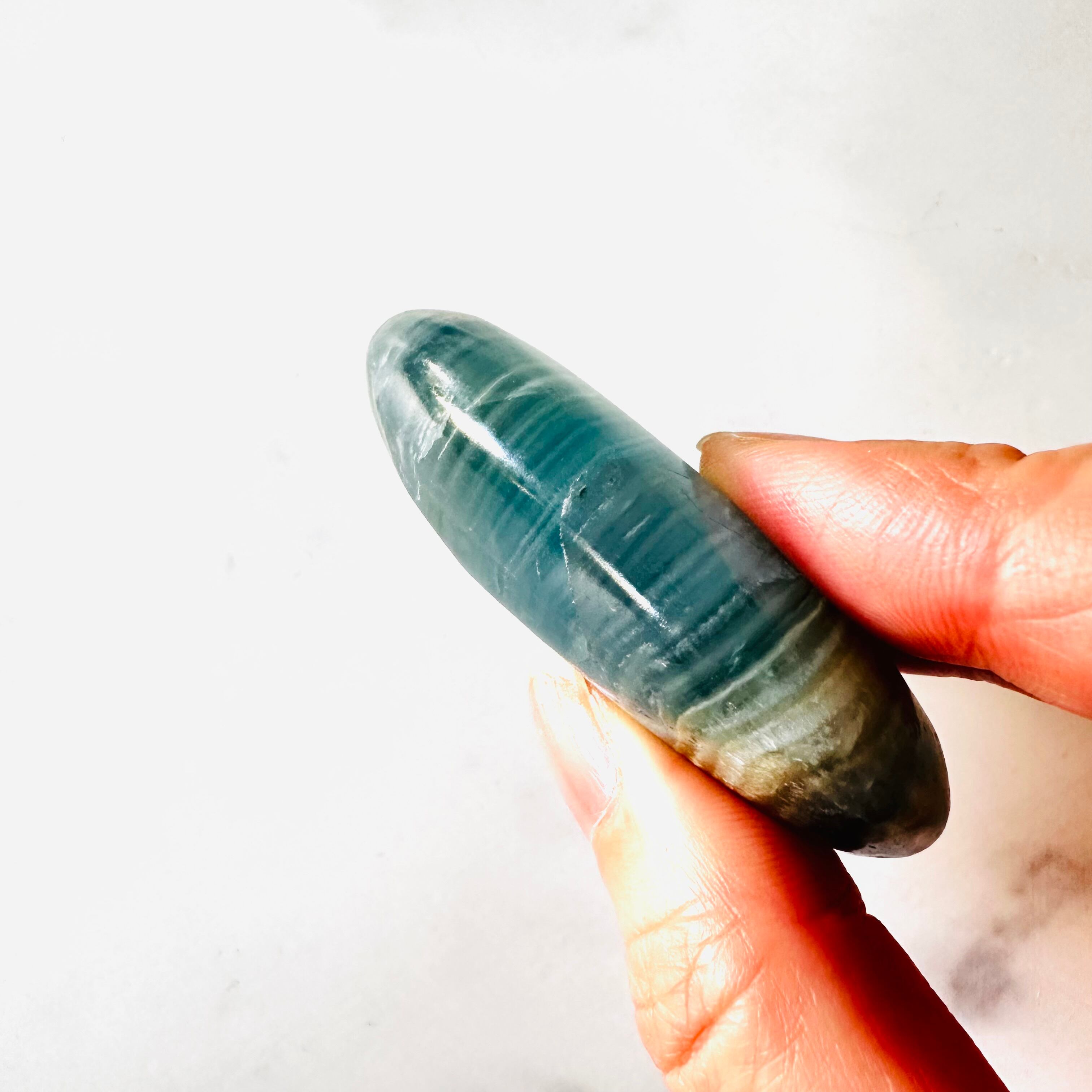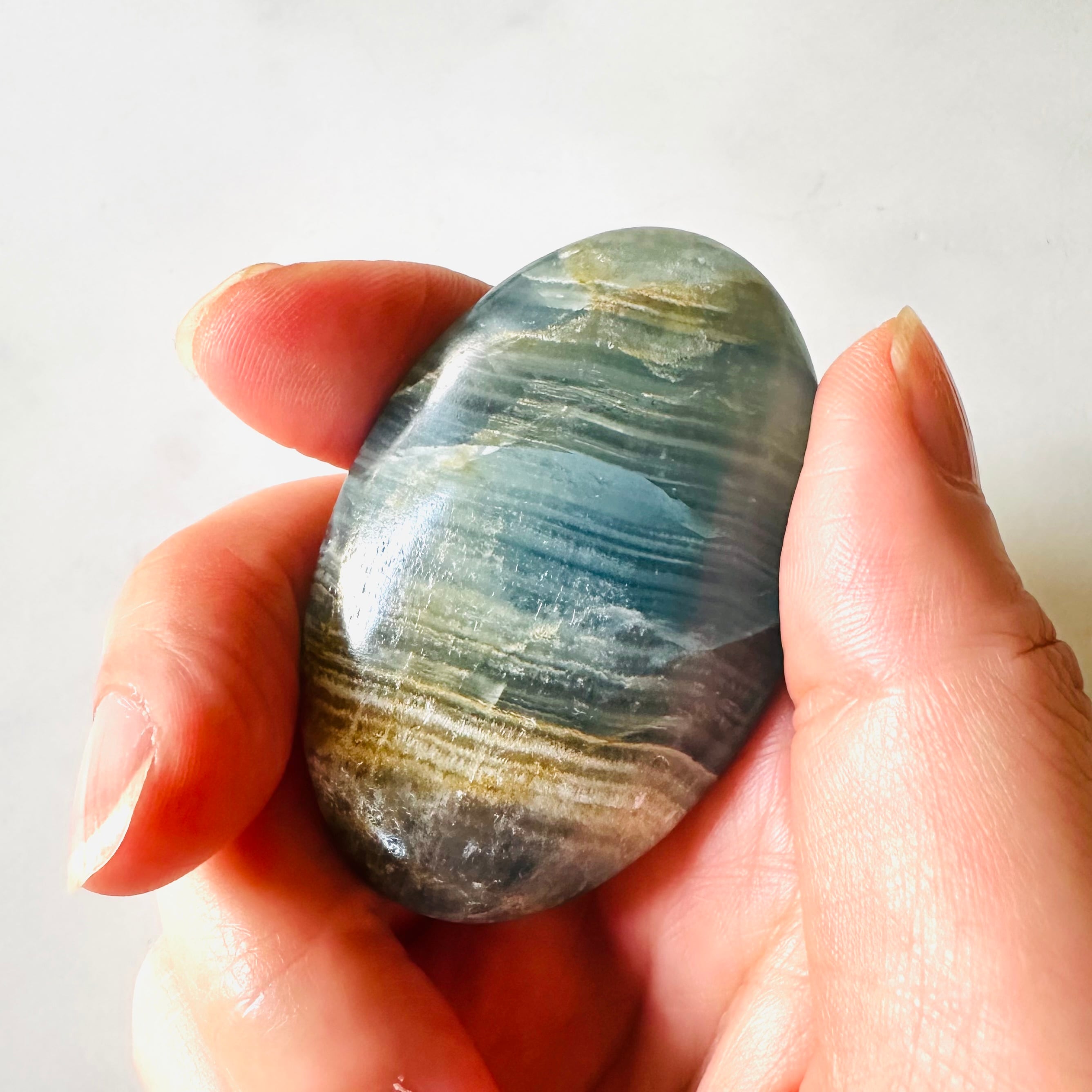 海のような空のようなインディゴブルーが美しいブルーオニキスのパームストーンです。