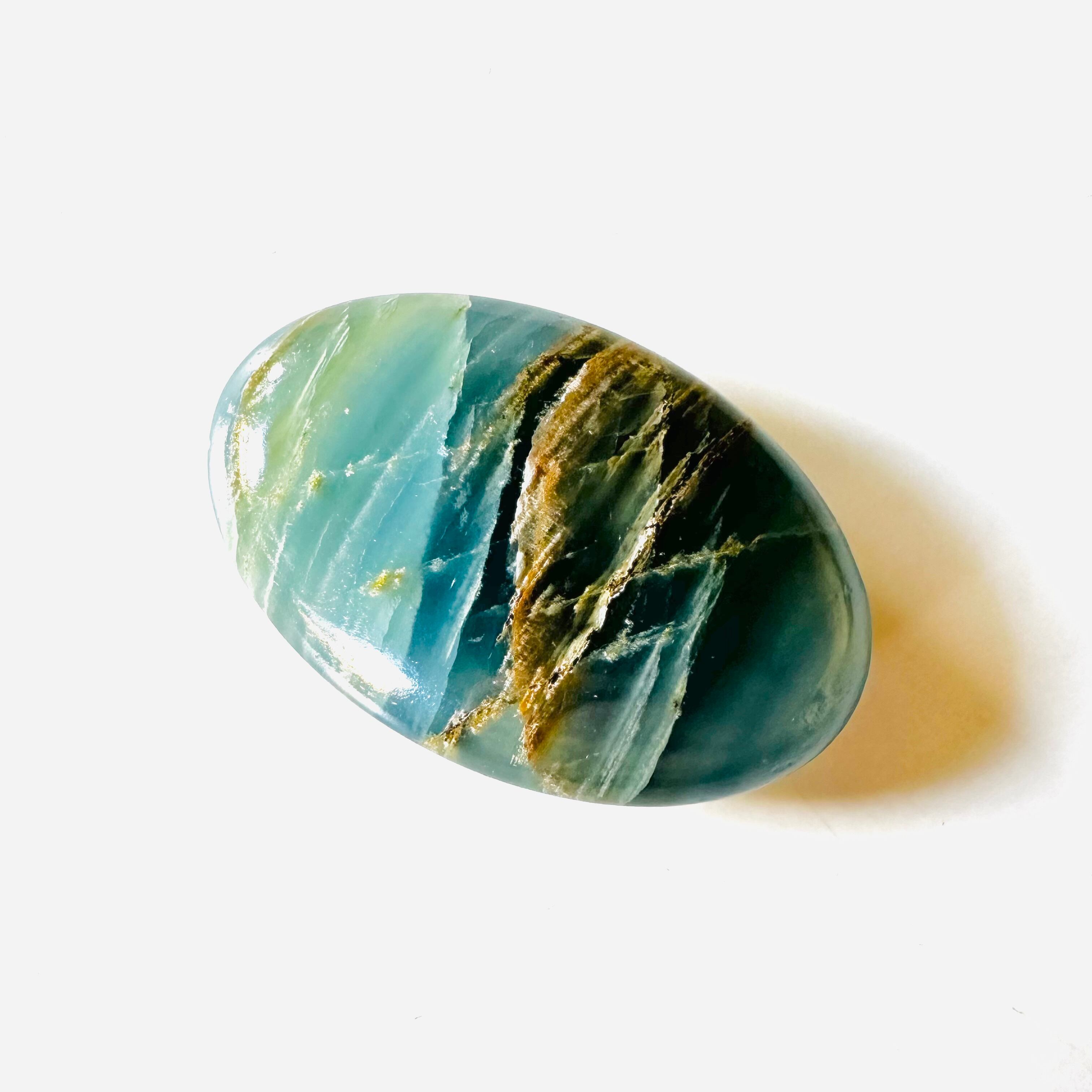 海のような空のようなインディゴブルーが美しいブルーオニキスのパームストーンです。