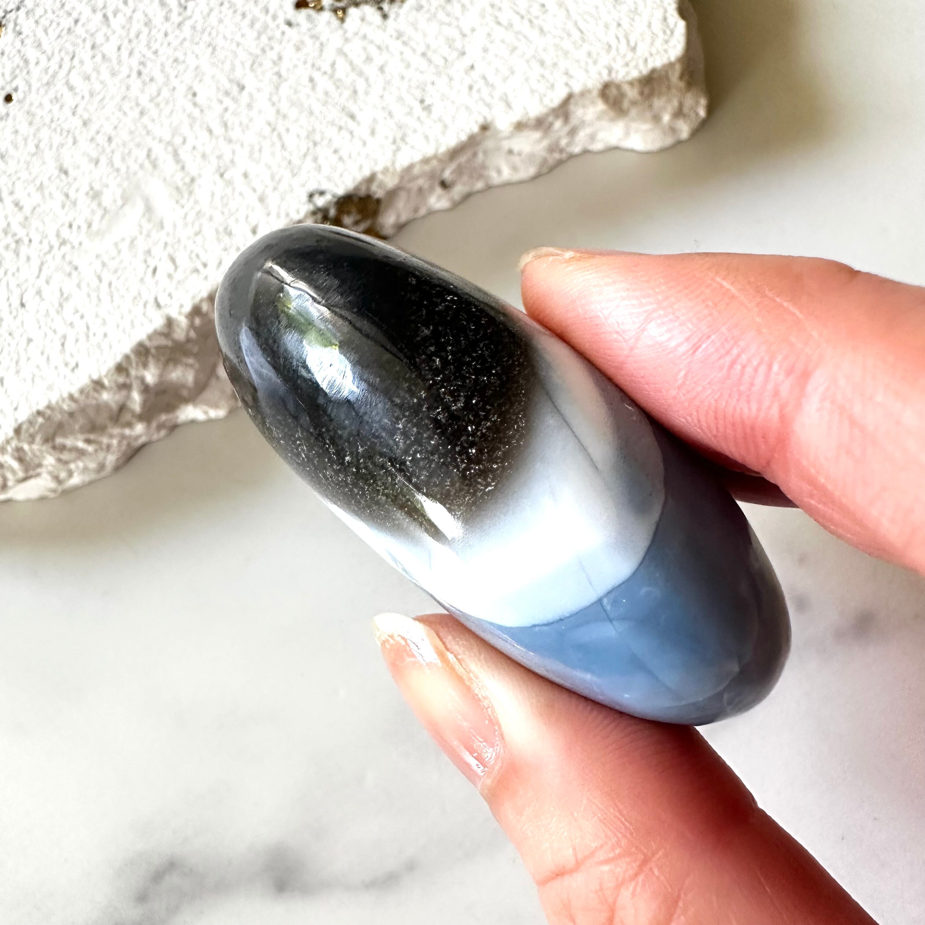 大自然に育まれた美しいブルーオパールのパームストーン。