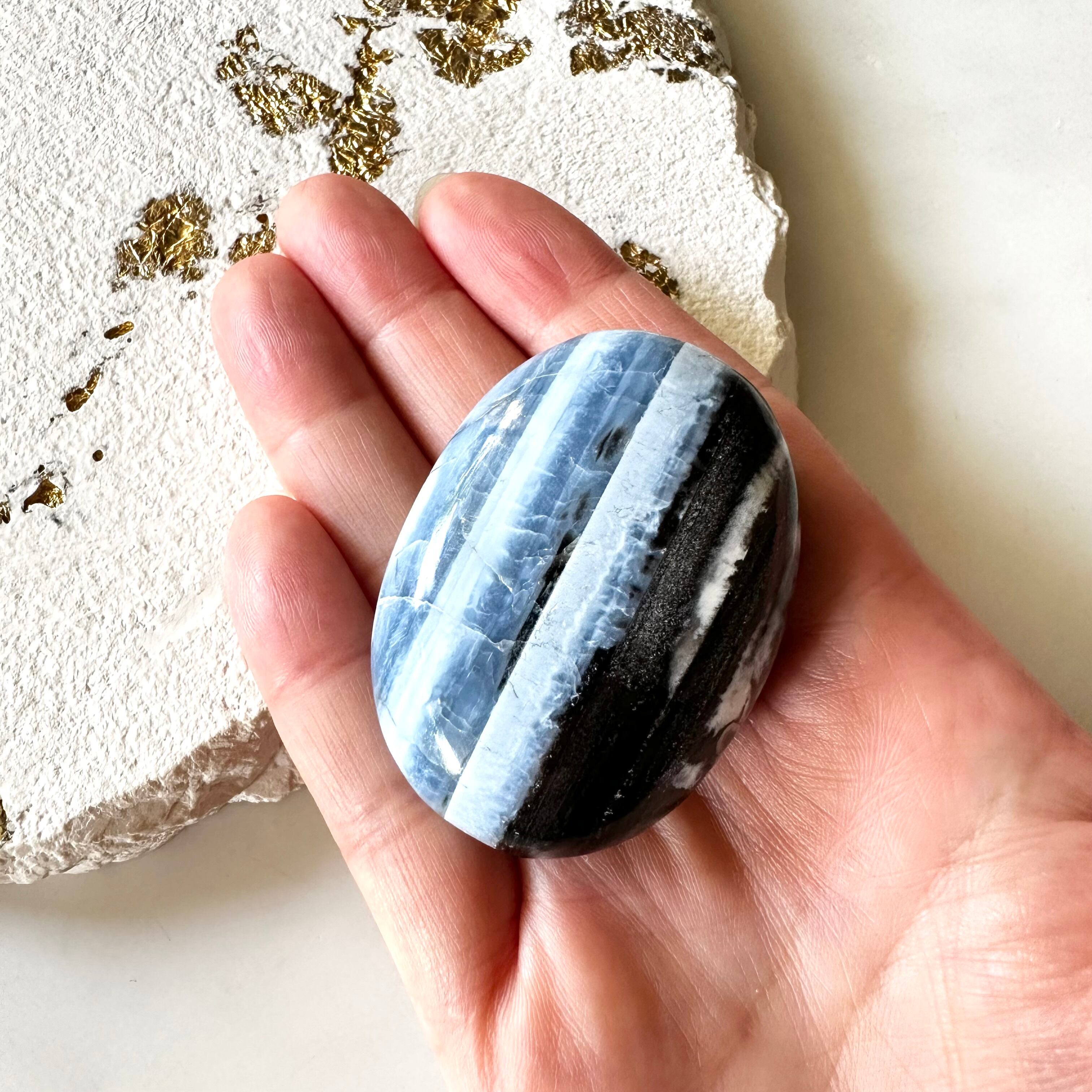大自然に育まれた美しいブルーオパールのパームストーン。