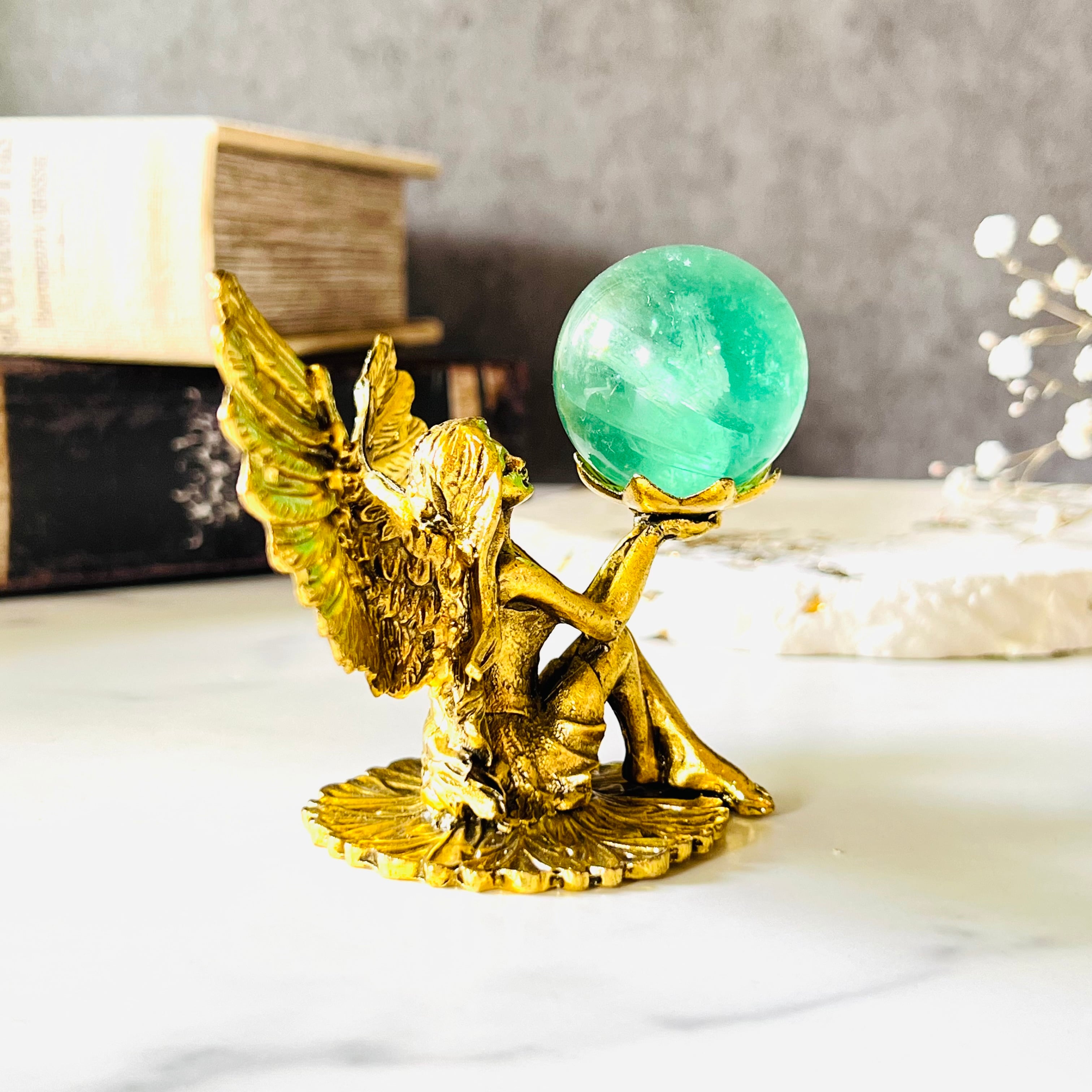 羽を広げた妖精が蓮の花を掲げたデザインが繊細で美しいスフィアスタンドです。