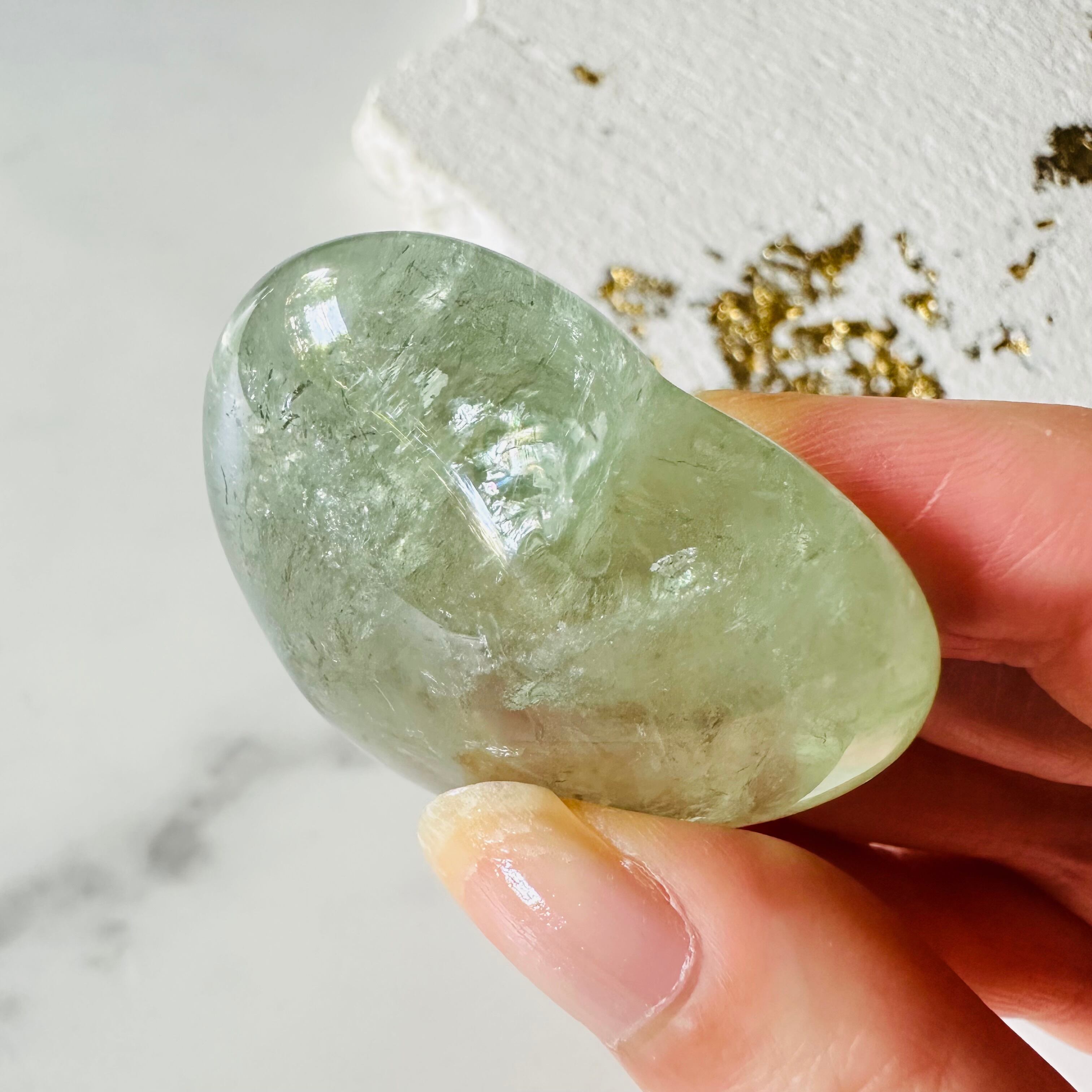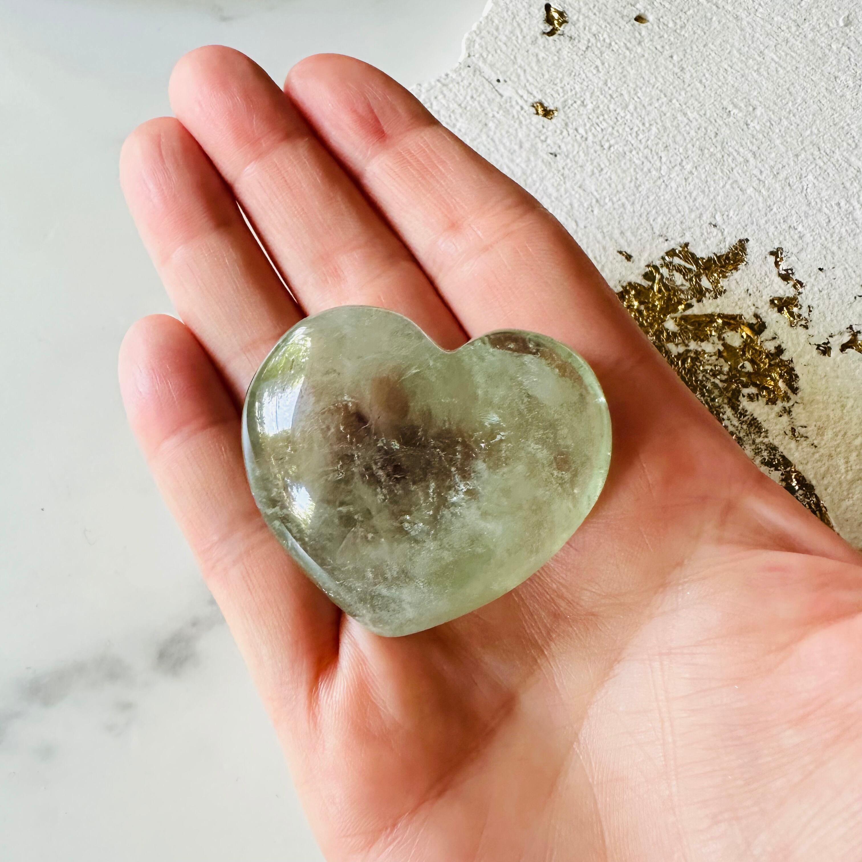 透明感のあるグリーンの瑞々しさが魅力的です。高貴な美しさを持つプラシオライトは、持ち主の存在感を高め、成熟した女性の美しいオーラを最大限に引き出します。高価な石なのでルースで見かけることが多く、このサイズのパームやハートはあまり流通していないように思います。