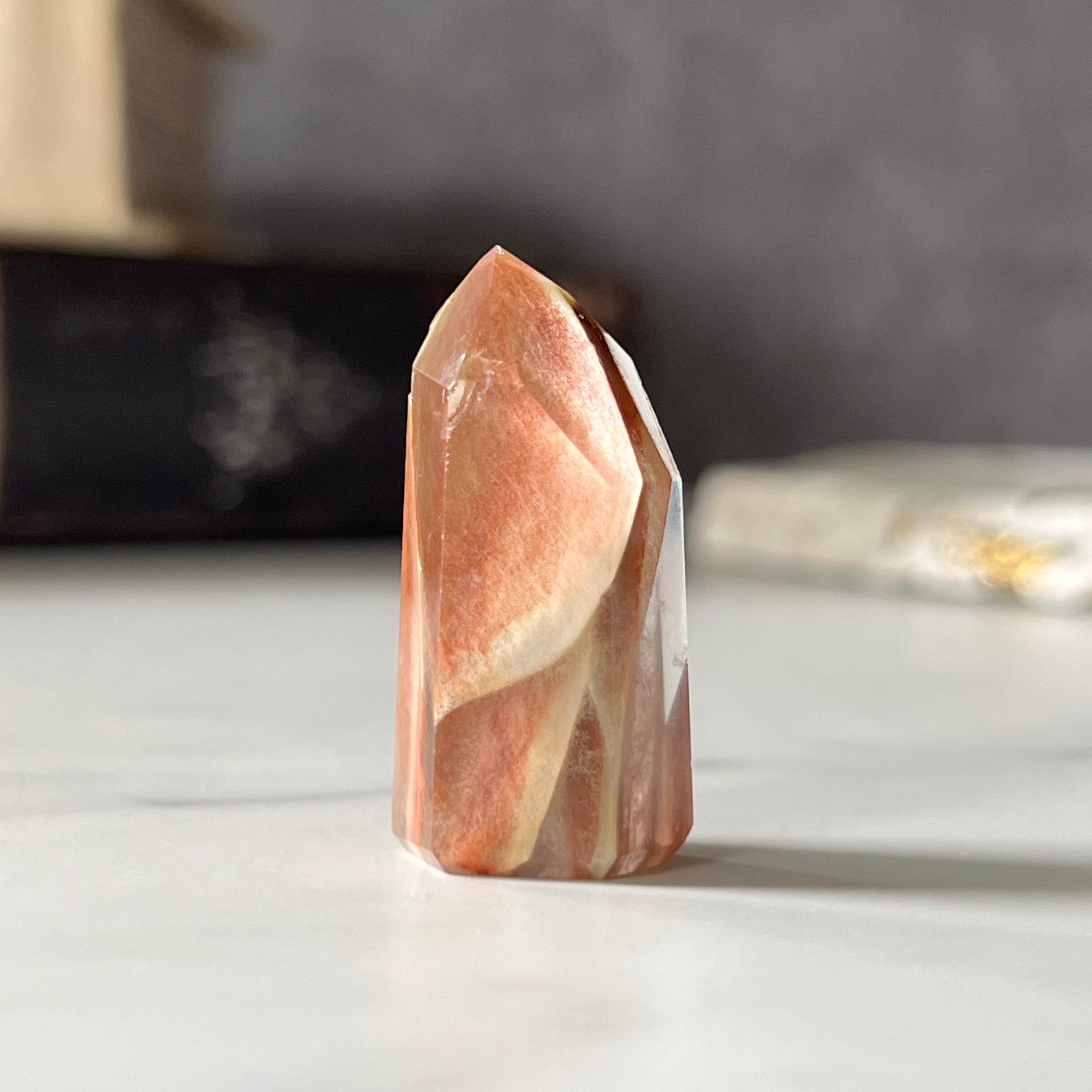 別名をエンジェル・ファントム・レムリアンと良い、美しく幻想的な赤いインクルージョンは赤い天使の羽に例えられます。守護となる天使が舞い降り導きを与えてくれると言われます。