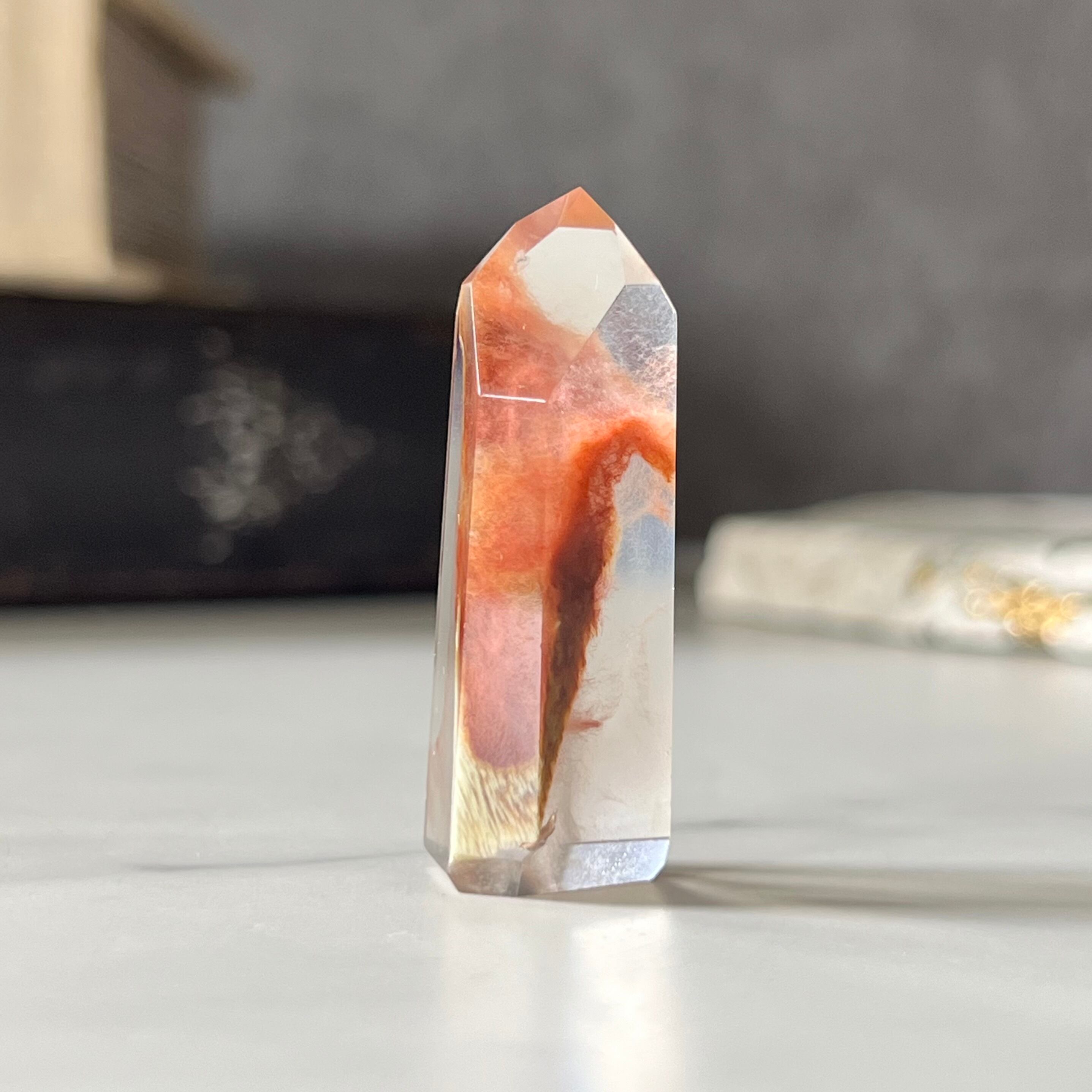 別名をエンジェル・ファントム・レムリアンと良い、美しく幻想的な赤いインクルージョンは赤い天使の羽に例えられます。守護となる天使が舞い降り導きを与えてくれると言われます。