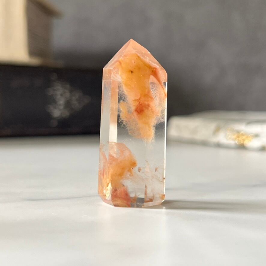 別名をエンジェル・ファントム・レムリアンと良い、美しく幻想的な赤いインクルージョンは赤い天使の羽に例えられます。守護となる天使が舞い降り導きを与えてくれると言われます。