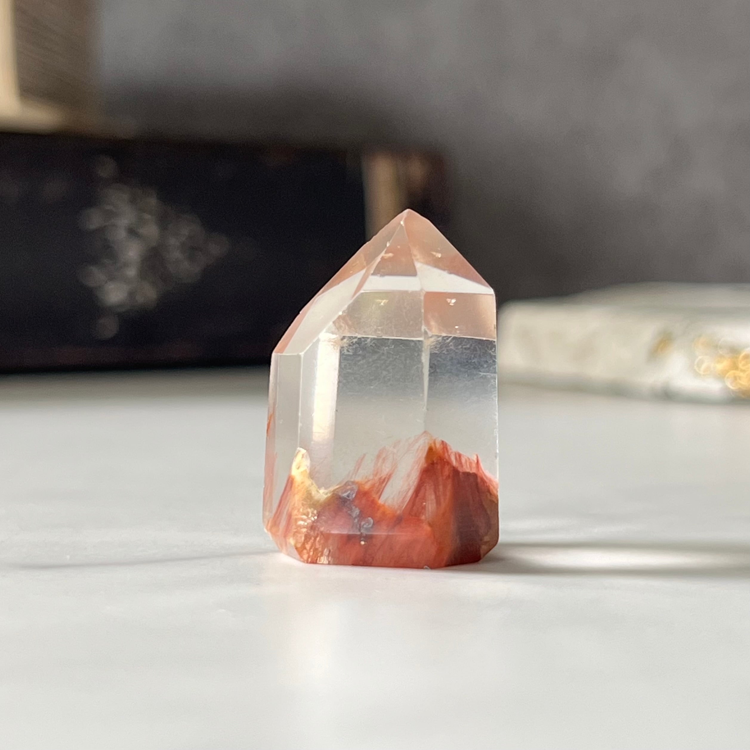 別名をエンジェル・ファントム・レムリアンと良い、美しく幻想的な赤いインクルージョンは赤い天使の羽に例えられます。守護となる天使が舞い降り導きを与えてくれると言われます。
