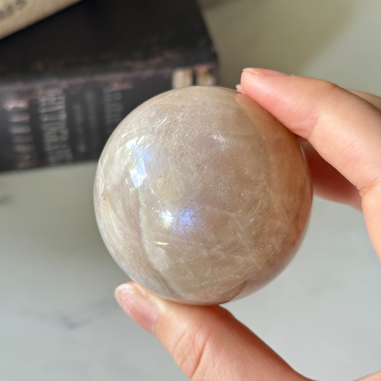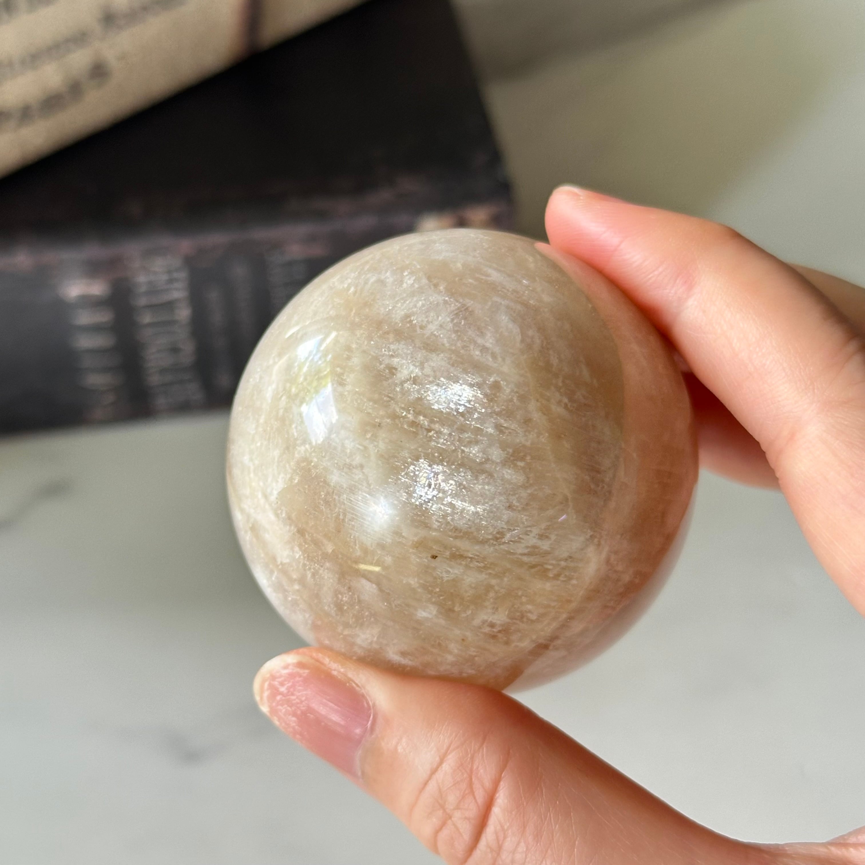 ロイヤルミルクティのような優しいベージュカラーのブルームーンストーンスフィア。