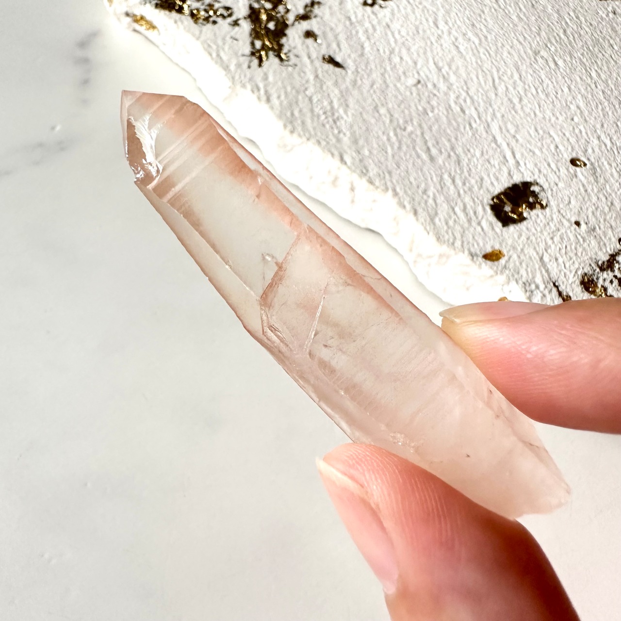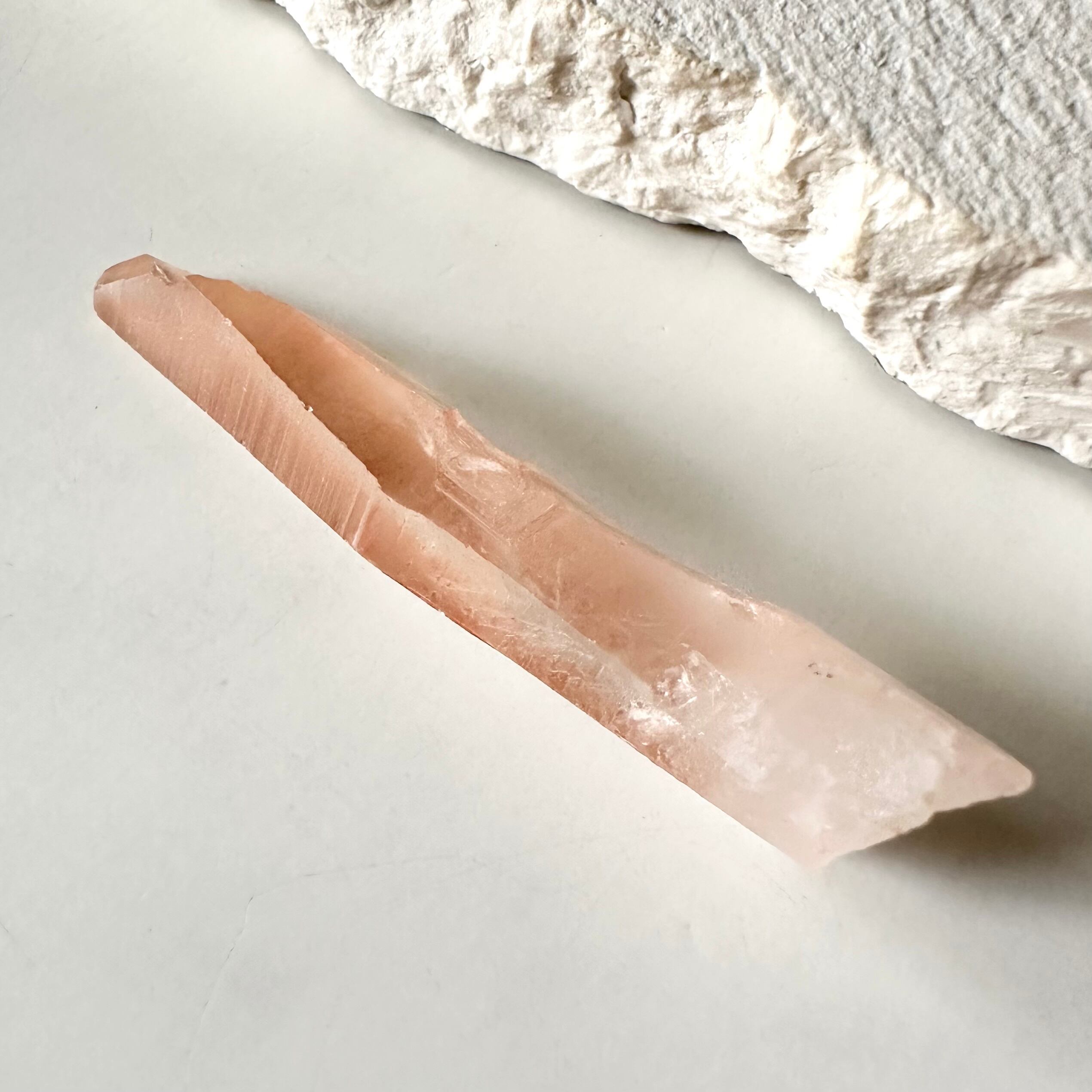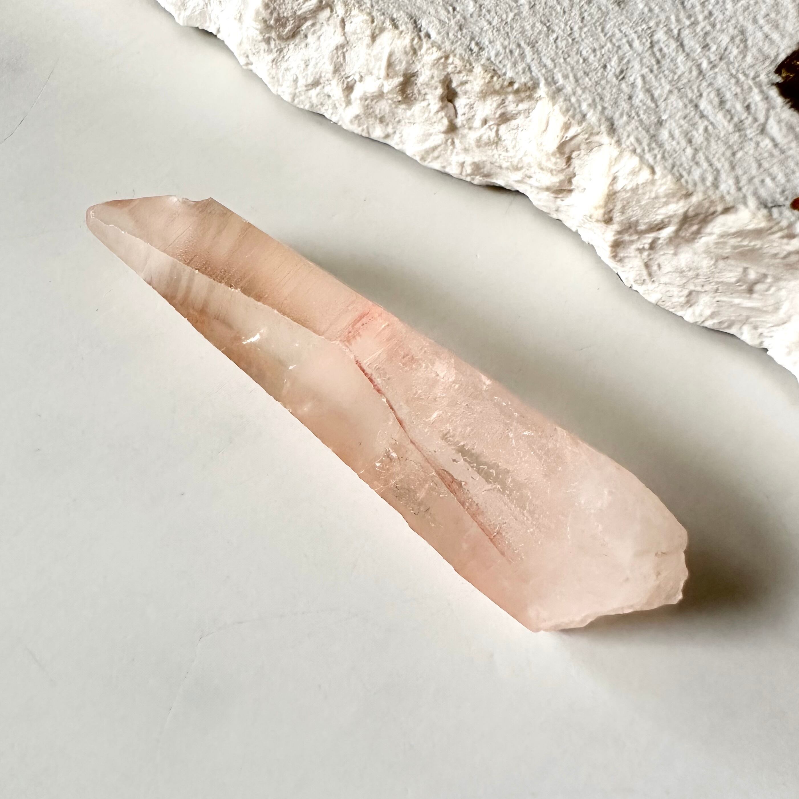 鉄分の付着によりピンク色に変化したレムリアンシードクリスタル。レムリアンは、数億万年前に存在したとされる伝説のレムリア大陸で、高度な文明を築いたとされるレムリア民族がメッセージを現代人に残し伝えるクリスタルだといわれています。可愛らしいピンク色は、レムリアンの強く静謐な波動に加えて、女性らしい優しさと愛情豊かなエネルギーに溢れています。