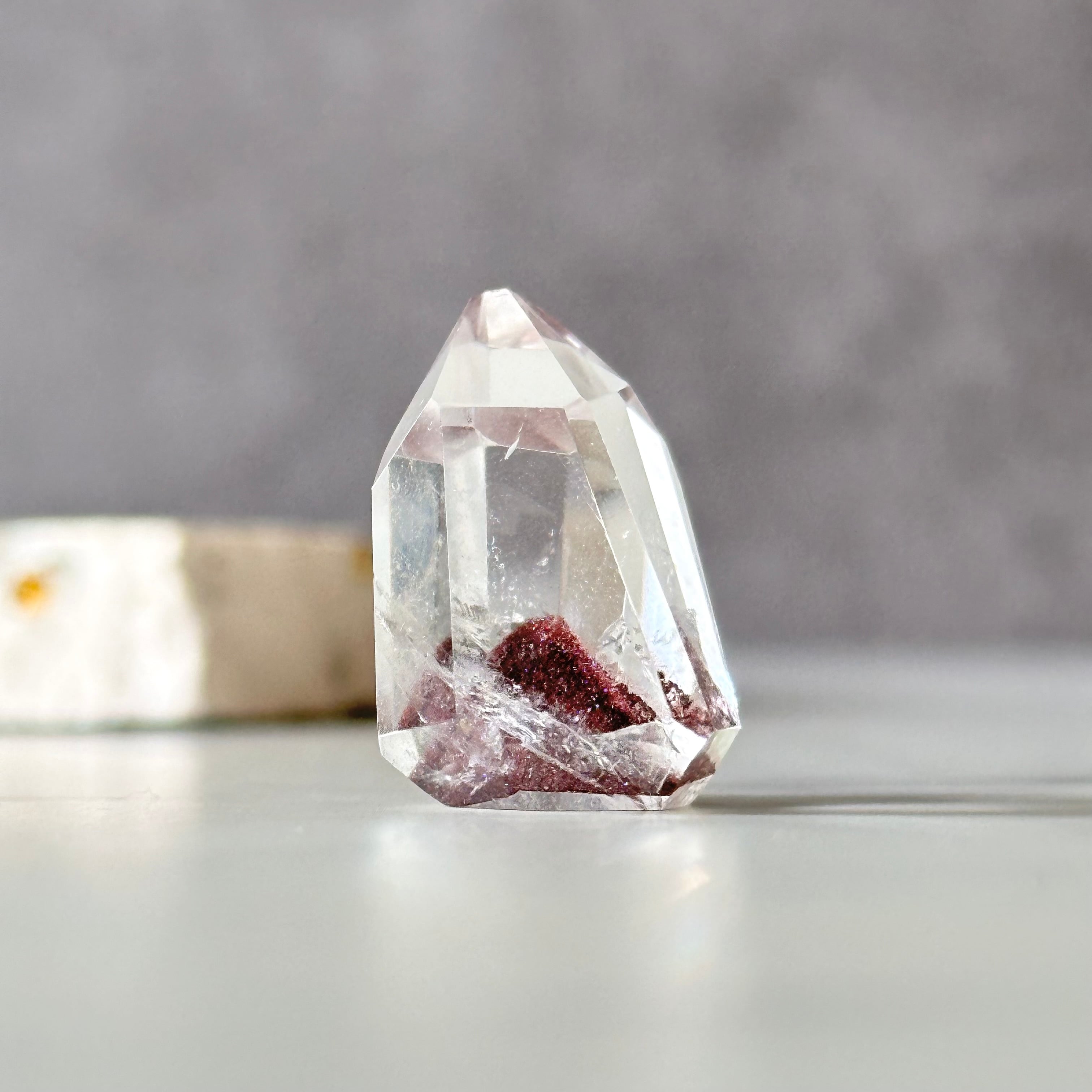 レッドファントムといえばザンビア産が有名ですが、閉山により供給が途絶え、綺麗な個体の流通が途絶えましたので、新しい鉱山であるインドのアンドラ・プラデーシュ州より取り寄せました。透明度の高いクォーツに映えるキラキラ輝く赤いファントムが魅力です。