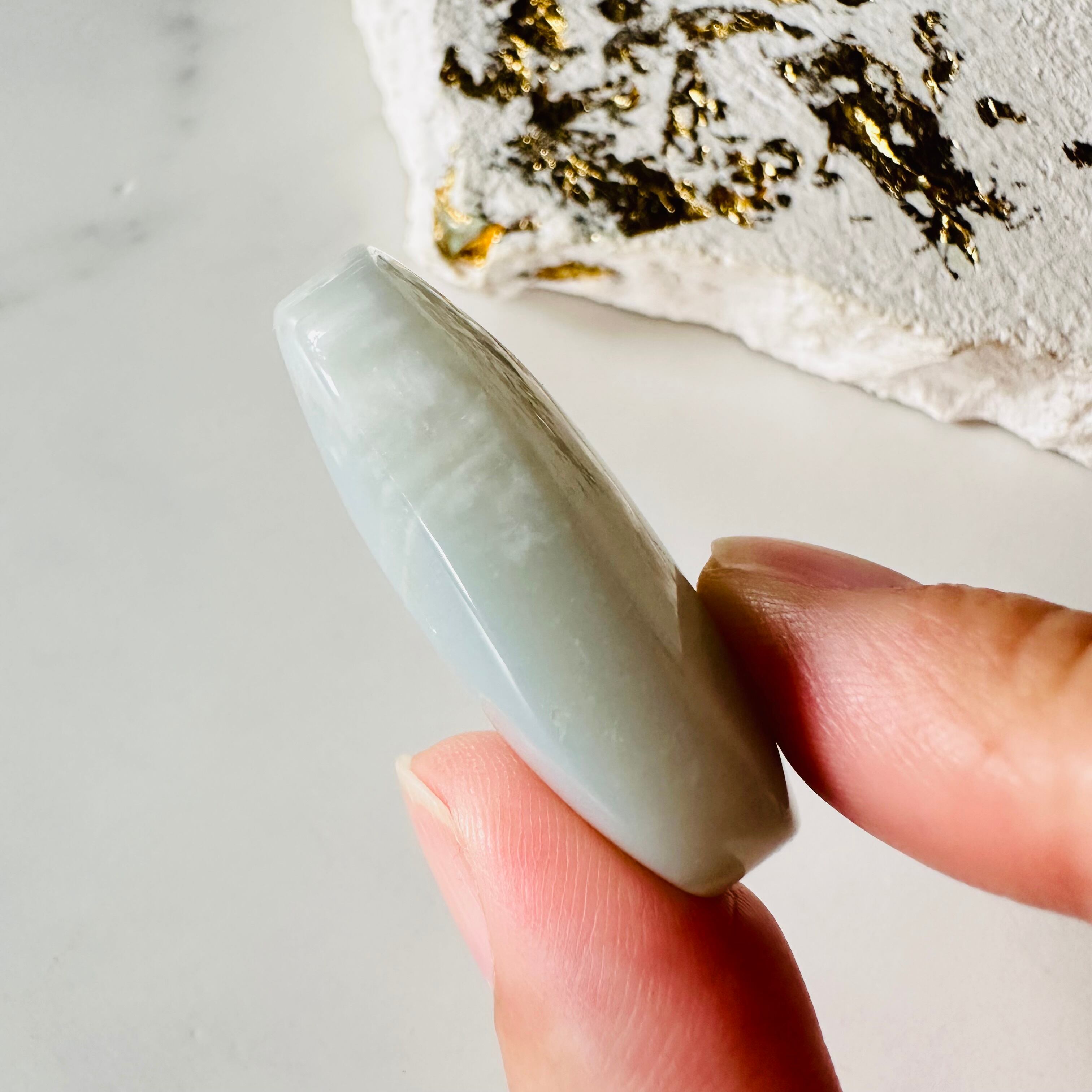 淡く柔らかなグリーンが印象的な天然石、グリーンムーンストーン。ガーニエライトとも呼ばれます。優しいシルバーフラッシュが心を癒し、緊張を解いてくれるような安らぎを感じるストーンです。