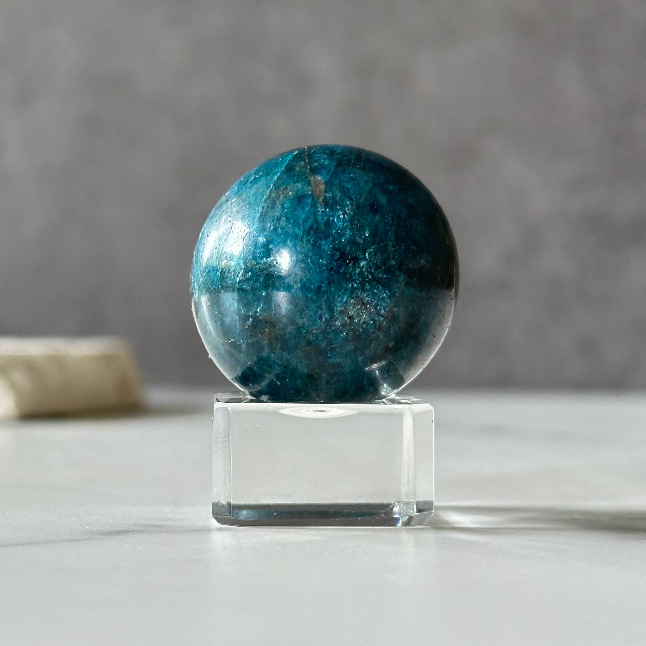 紺碧の青色が美しいブルーアパタイトのスフィアです。