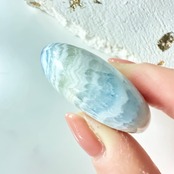 美しい縞模様が最大の特徴で、クレージーレースアゲートとブルーレースアゲートの中間をとったような印象があります。日本国内では流通が非常に少ないレアストーンです。