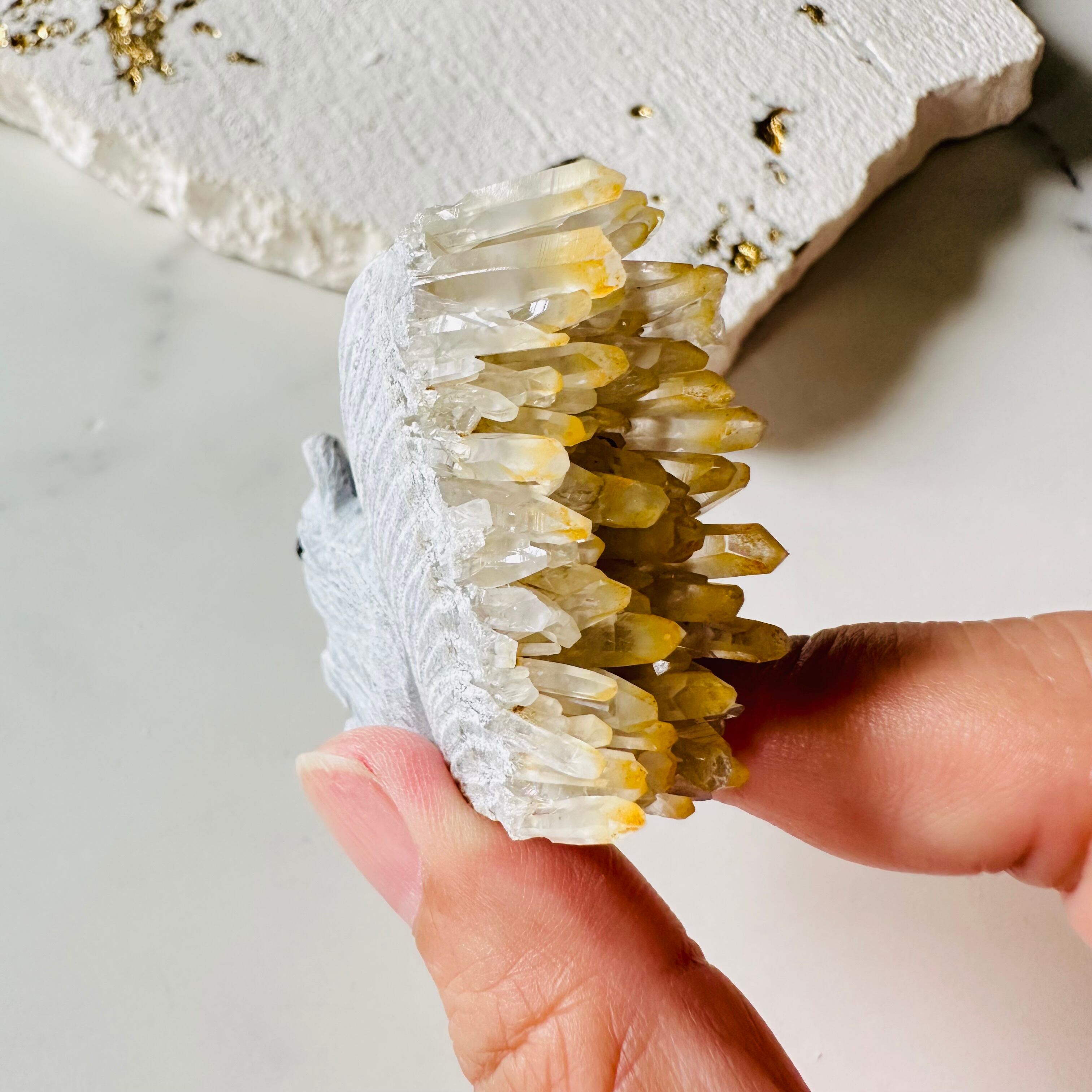 水晶クラスターもとても綺麗で、ミクロな結晶がキラキラと輝きます。