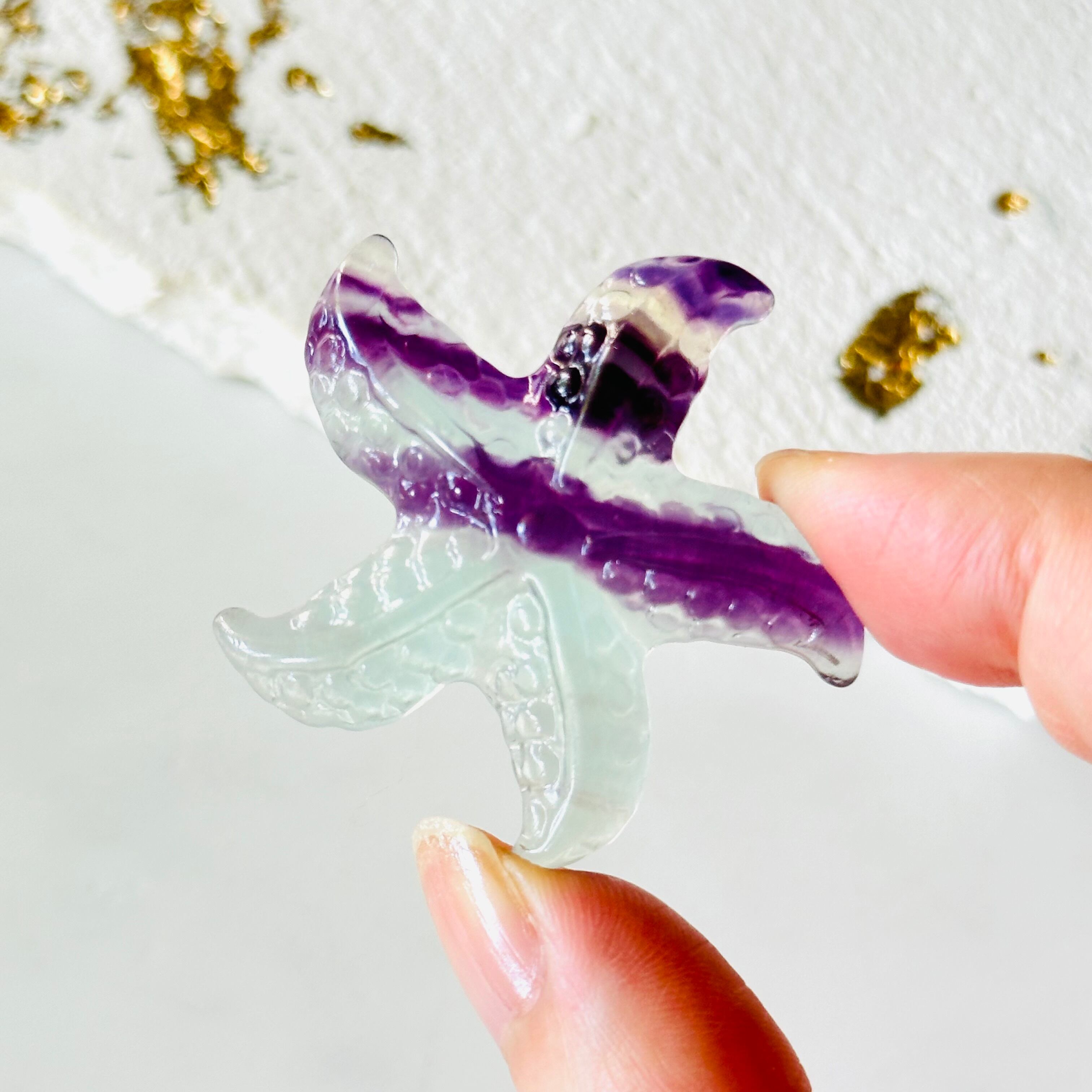 透き通ったフローライトのヒトデです。