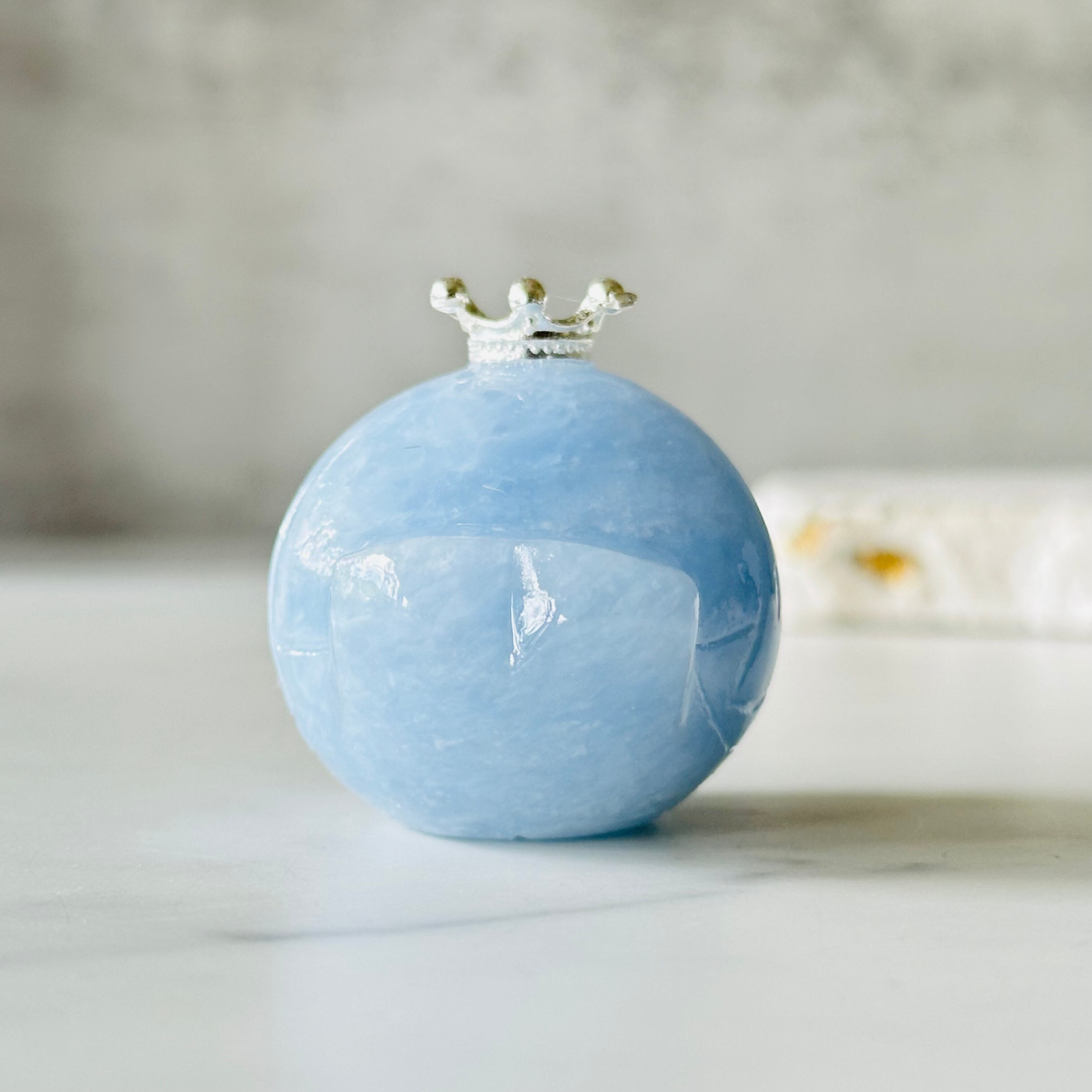 セレスタイトは青い空や澄んだ海を思わせる美しいブルーが特徴です。比較的柔らかい石なので、通常は原石のまま流通しています。このように生き物の形に加工されることは珍しいです。ベッドサイドにぜひ置いてほしいアイテムです。