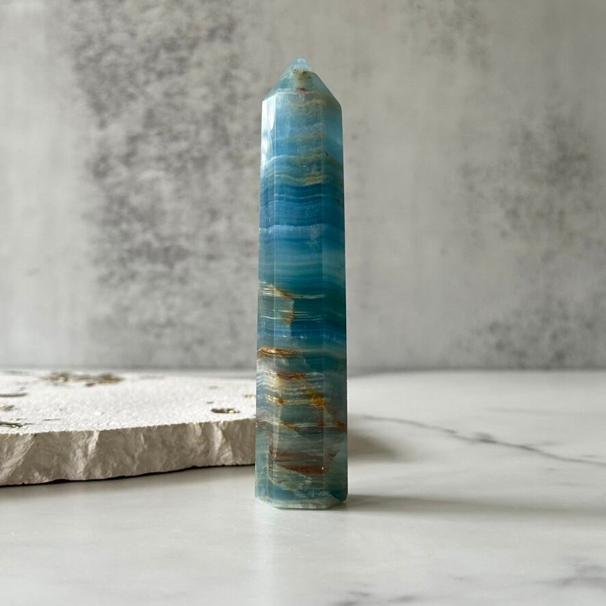 海のように澄んだ青と、縦に入ったブラウンの縞模様が波打ち際のようで、耳をすませば波の音が聞こえてきそうな気がします。寄せて返す波が日々の疲れを洗い流してくれるように、心と体を優しく癒してくれるストーンです。