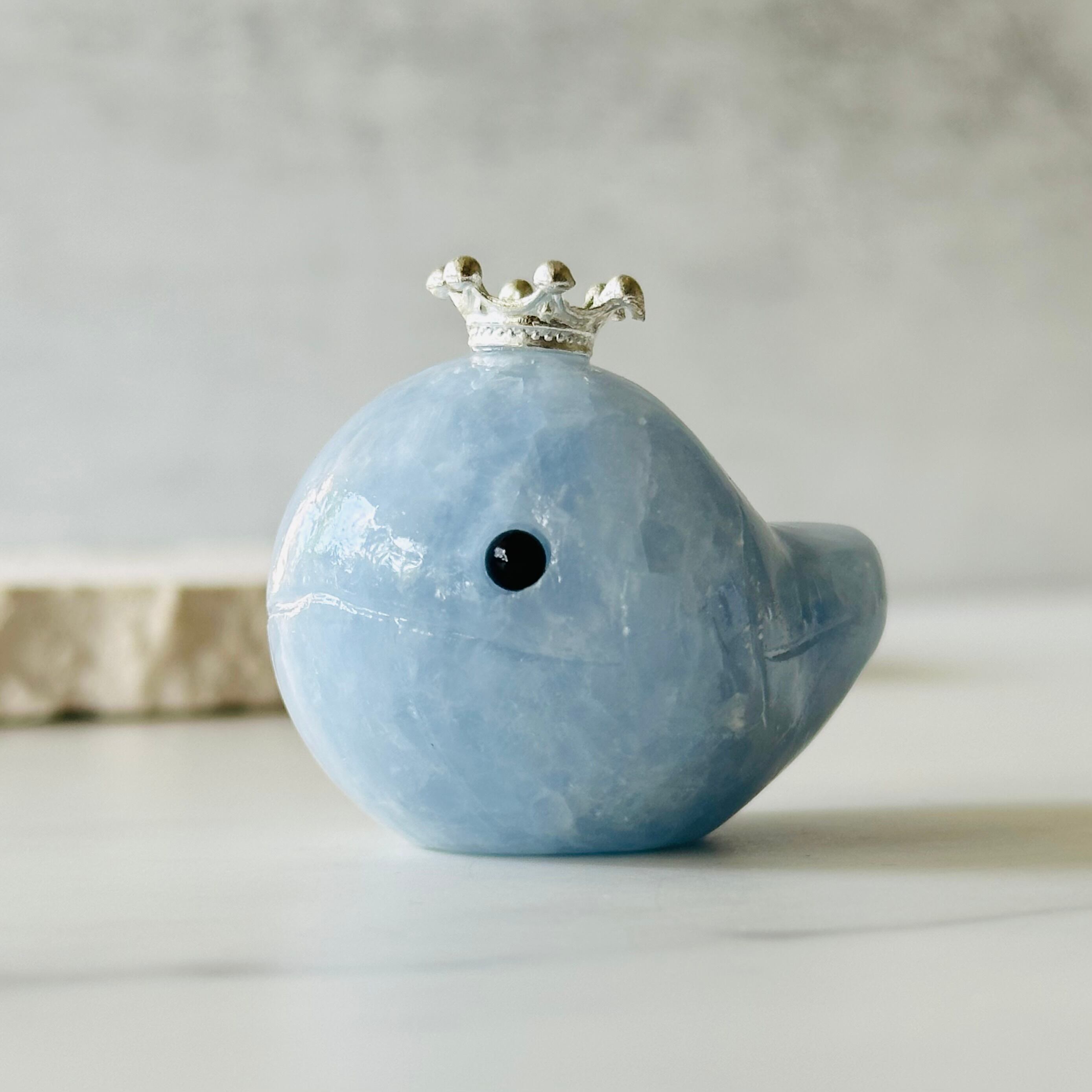 コロンと丸みのある形が可愛らしいセレスタイトのクジラさん。