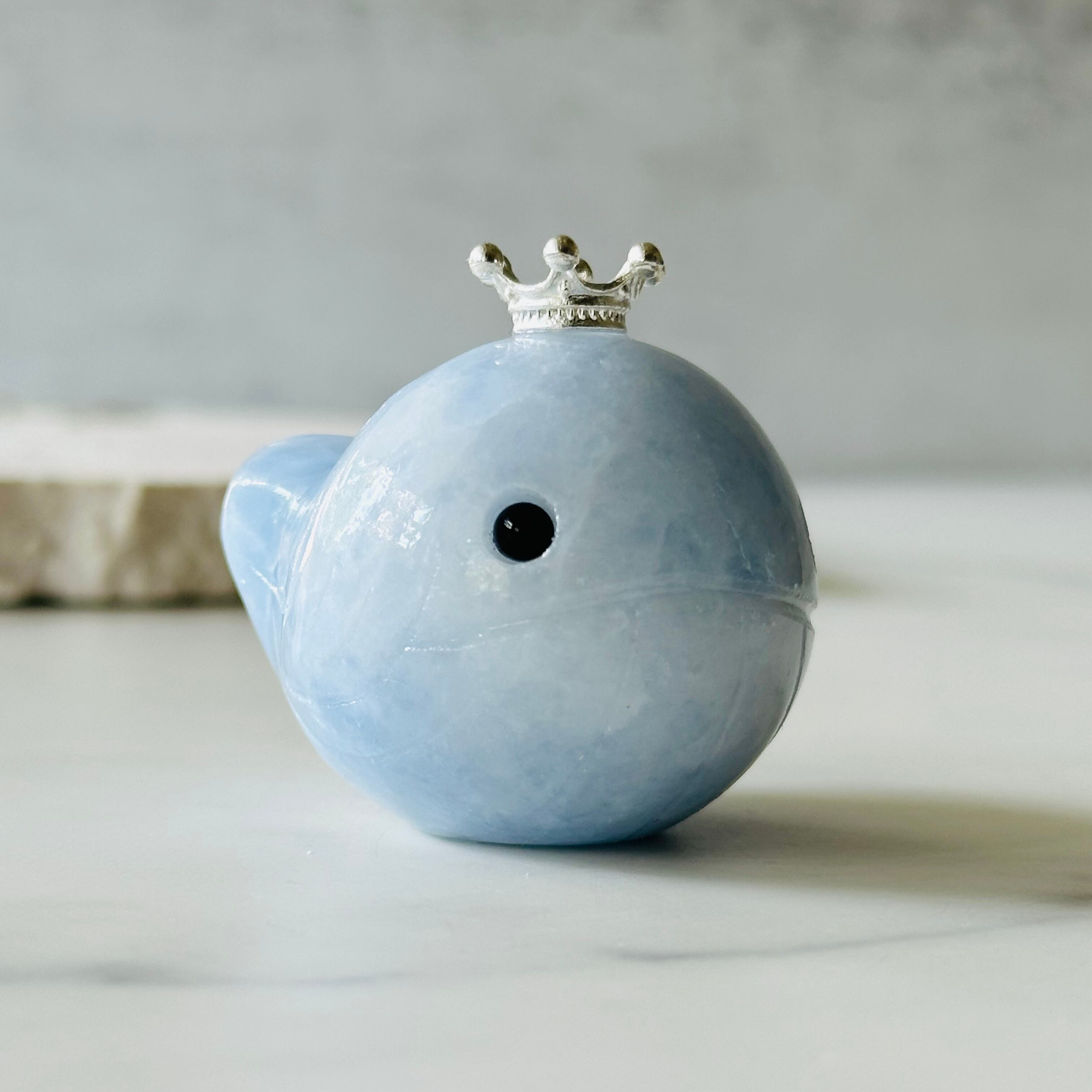 コロンと丸みのある形が可愛らしいセレスタイトのクジラさん。