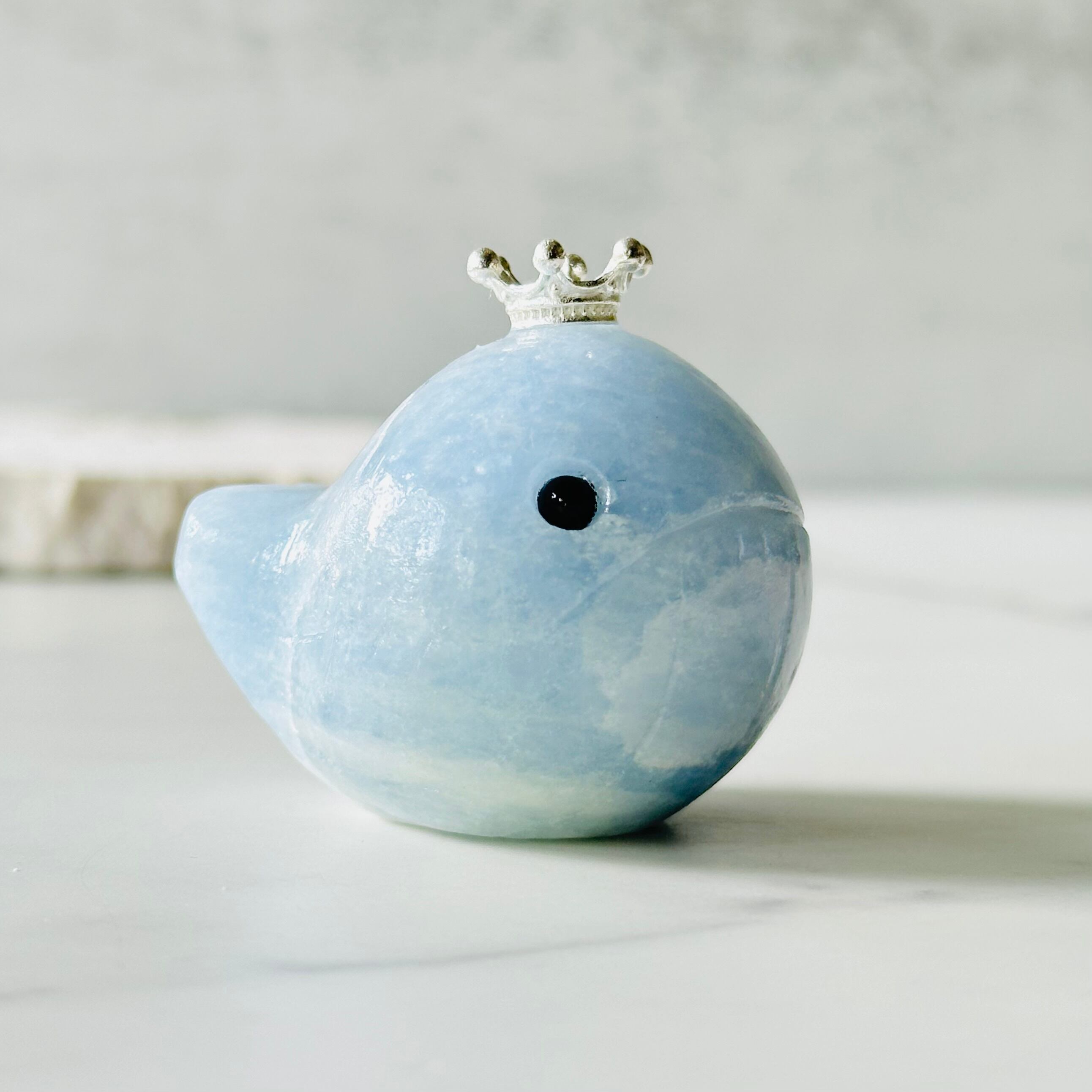 コロンと丸みのある形が可愛らしいセレスタイトのクジラさん。
