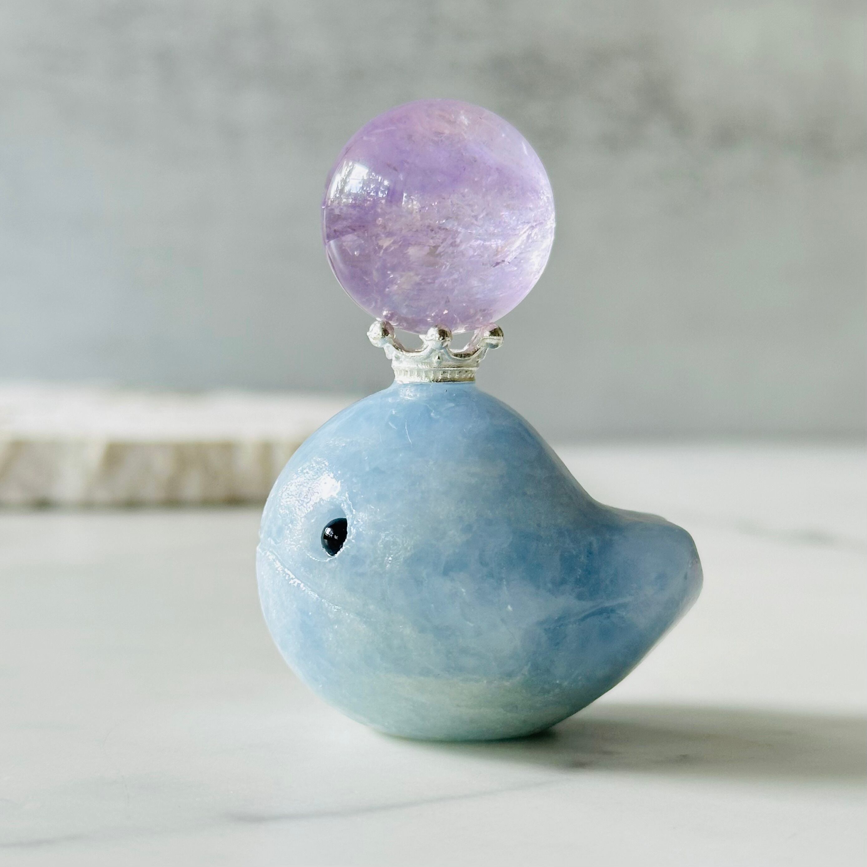 コロンと丸みのある形が可愛らしいセレスタイトのクジラさん。