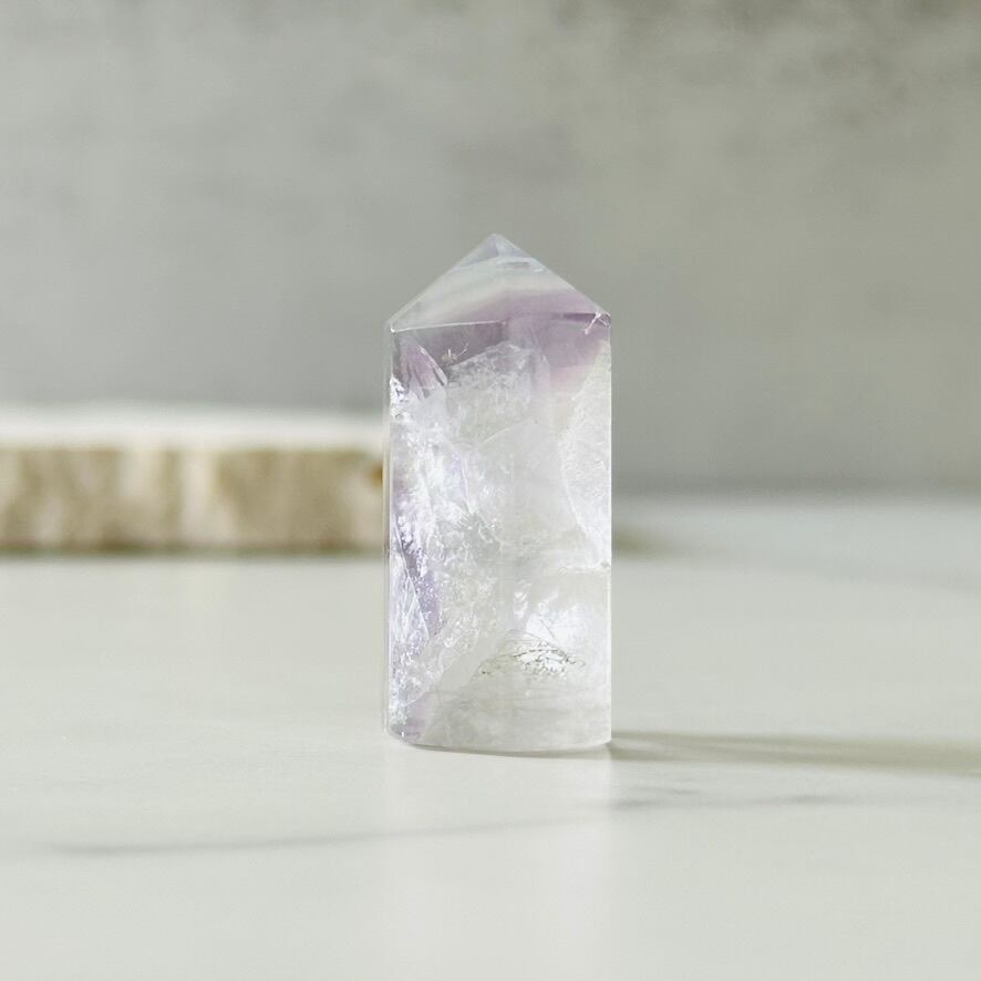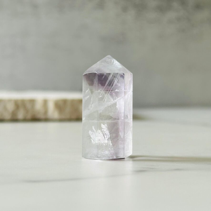 透明感の高いフローライトのミニポイントです。ほんのりラベンダーカラーが上品なアイテムです。綺麗な虹も見られます。