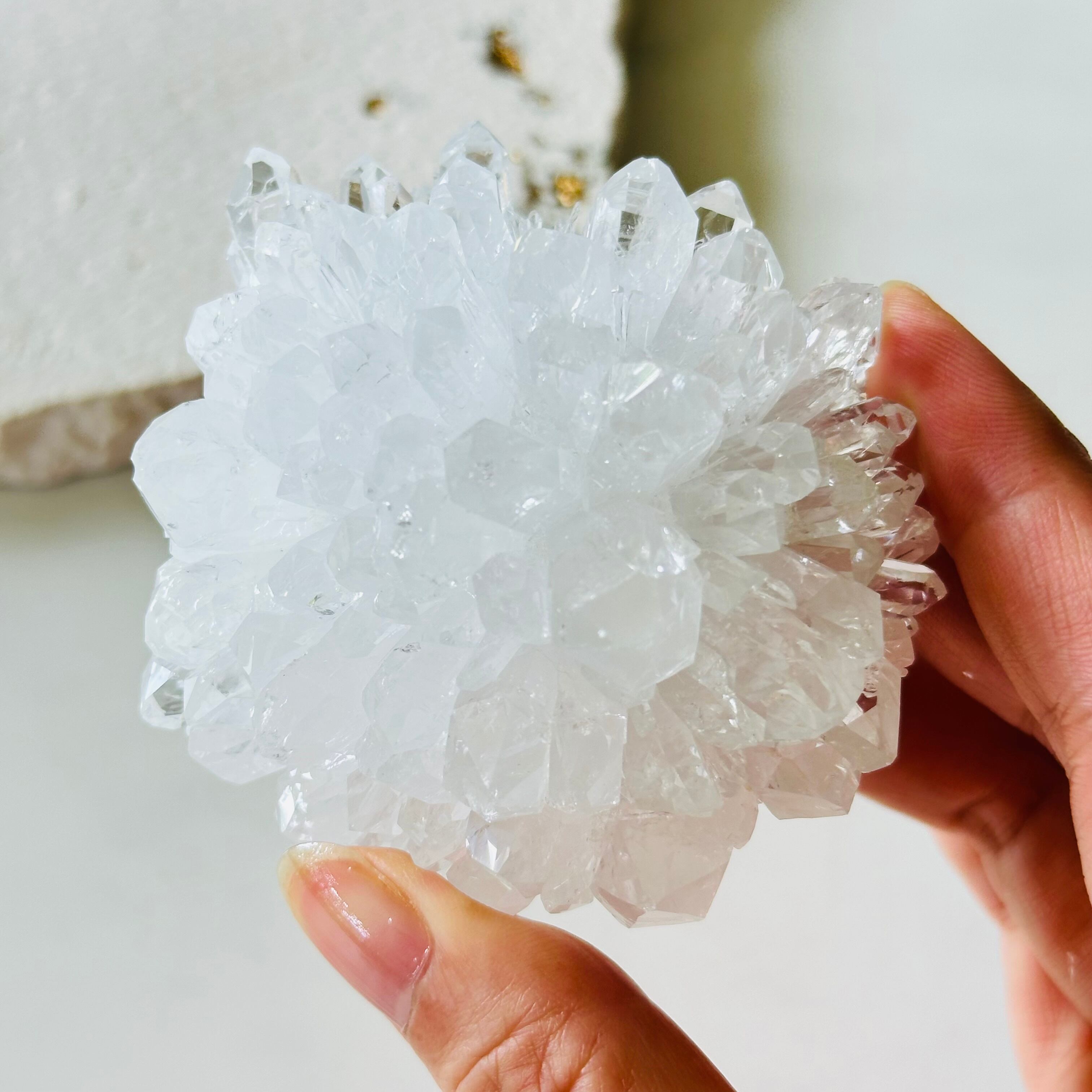 ふんわりまあるいお花が開いたような形が可愛いクリアクォーツクラスター。