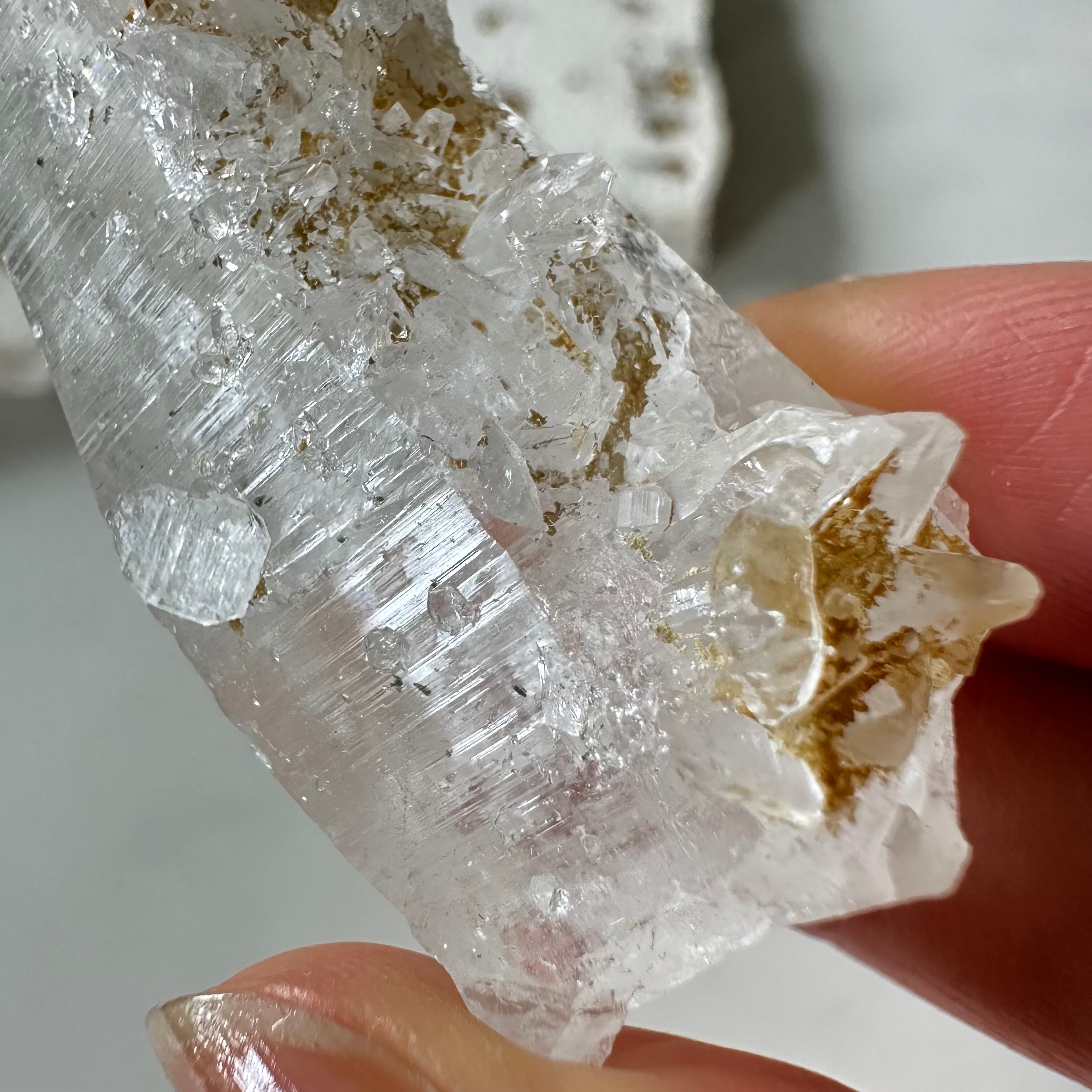 透明感たっぷりでみずみずしいガネーシュヒマール産水晶が美しい結晶のドレスを纏いました。