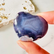 青紫色の石にピンク色のお花が咲き誇るブルーフラワーアゲートのハート型ストーンです。艶のある質感と美しい色合いが魅力です。