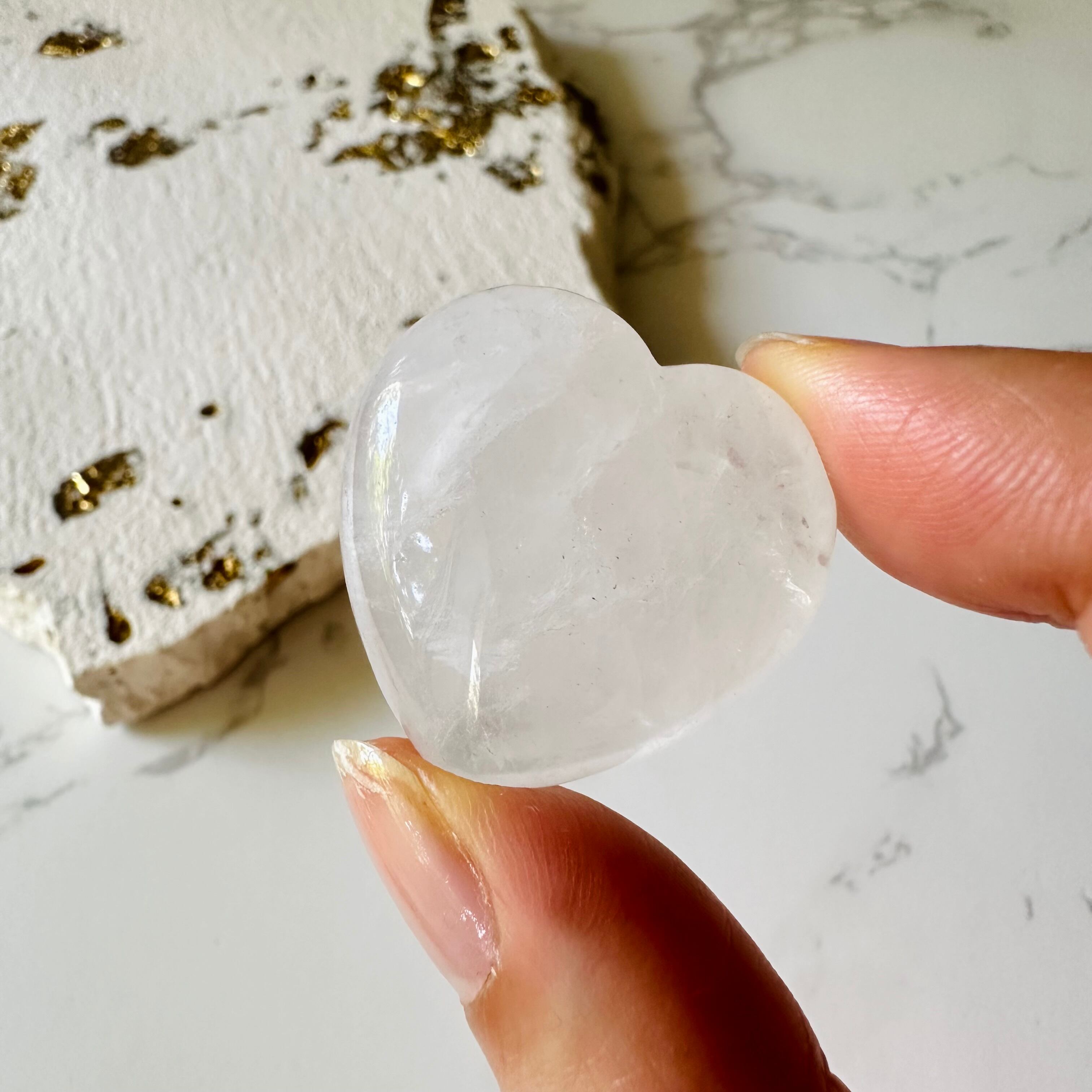 ローズクォーツとクリアクォーツのハート型ミニストーンの2個セットです。艶のある綺麗な個体を厳選しました。可愛らしいサイズと色合いが魅力のセットです。在庫からランダムでお届けいたします。