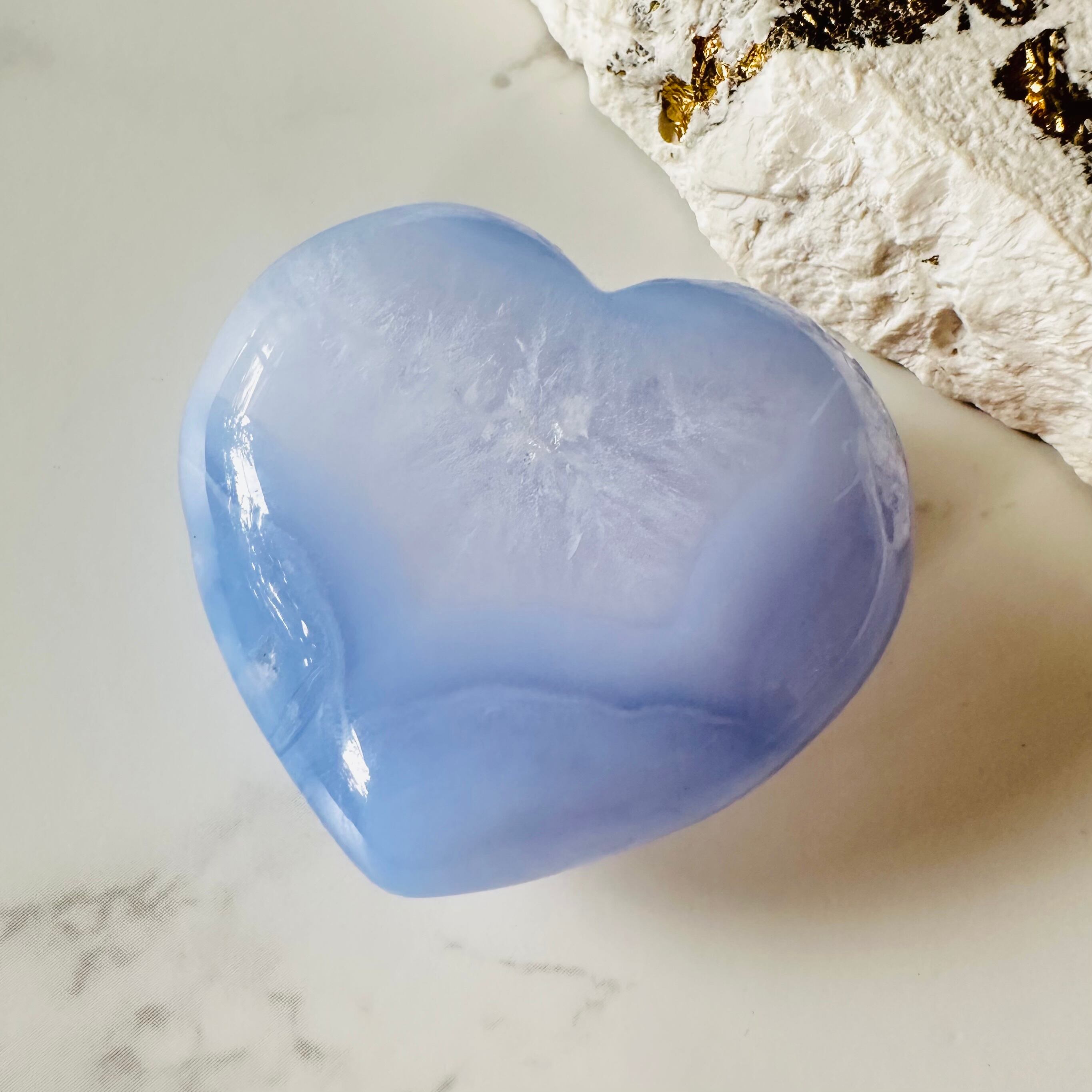 上品なサックスブルーのブルーレースアゲートハート型ストーンです。