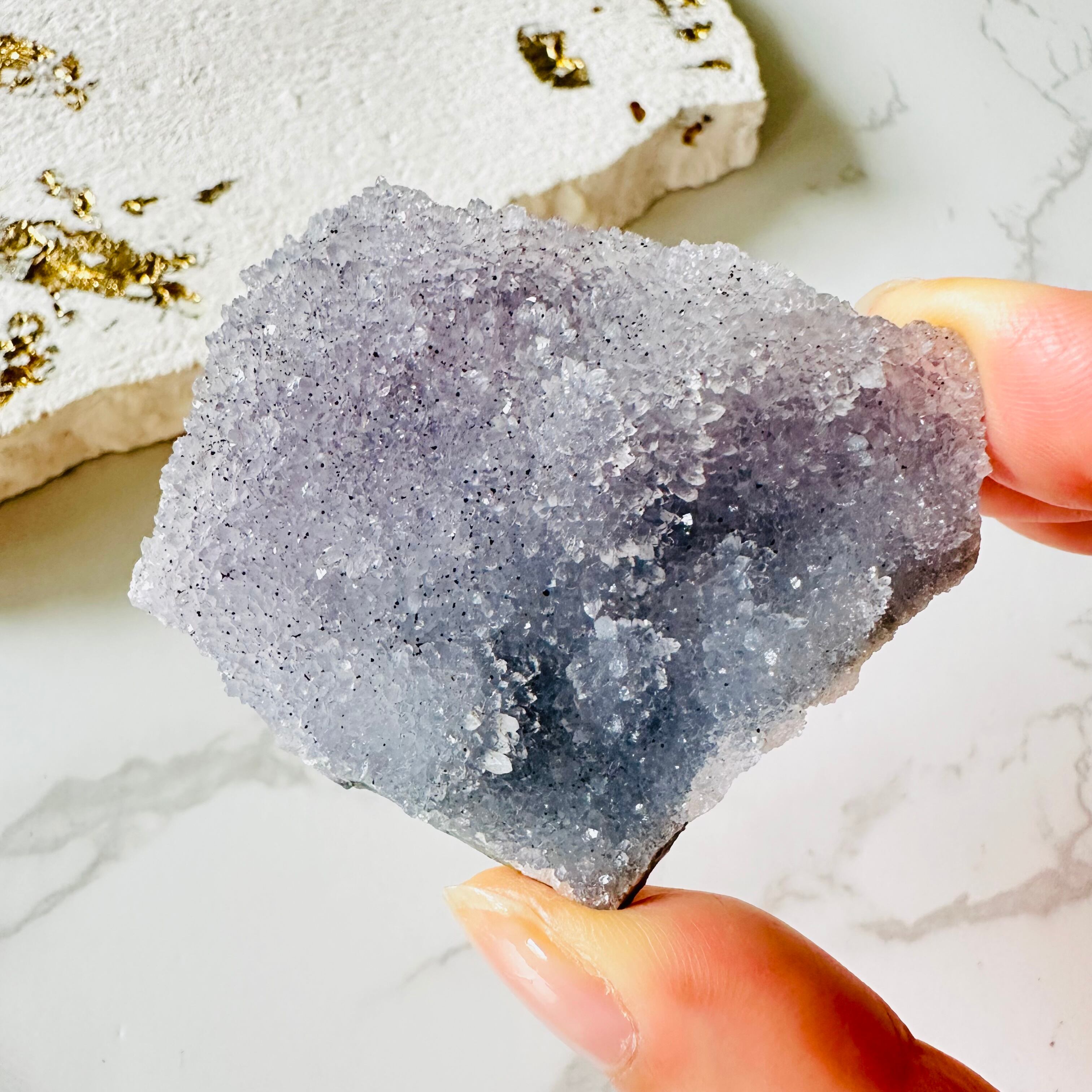 ラベンダーパープルとブルーのグラデーションが綺麗です。細かく繊細な原石の粒が上品にきらめきます。