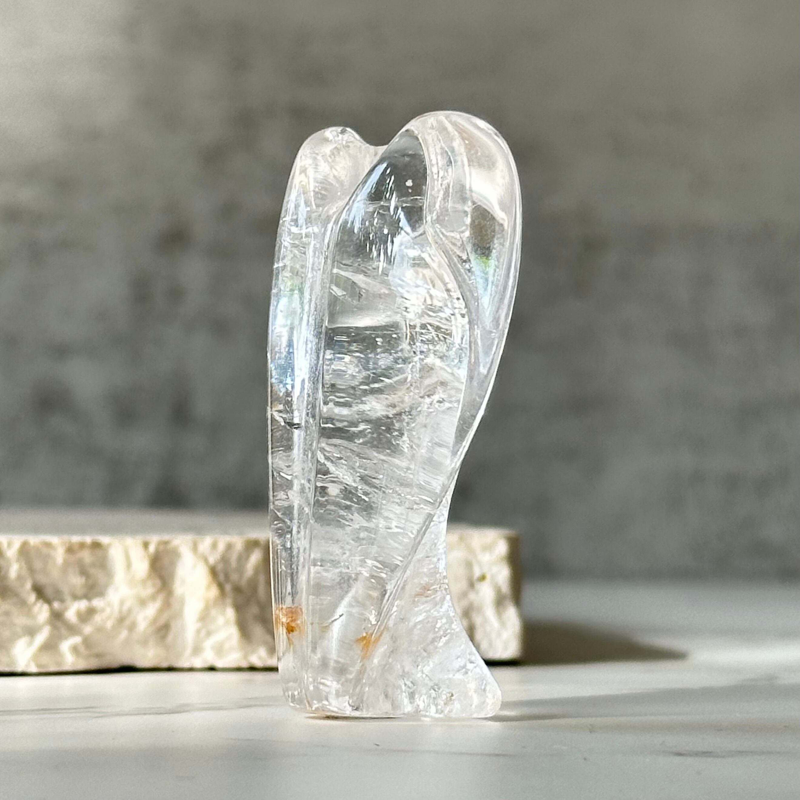 透明感がたっぷりで瑞々しいクリアクォーツのエンジェル。