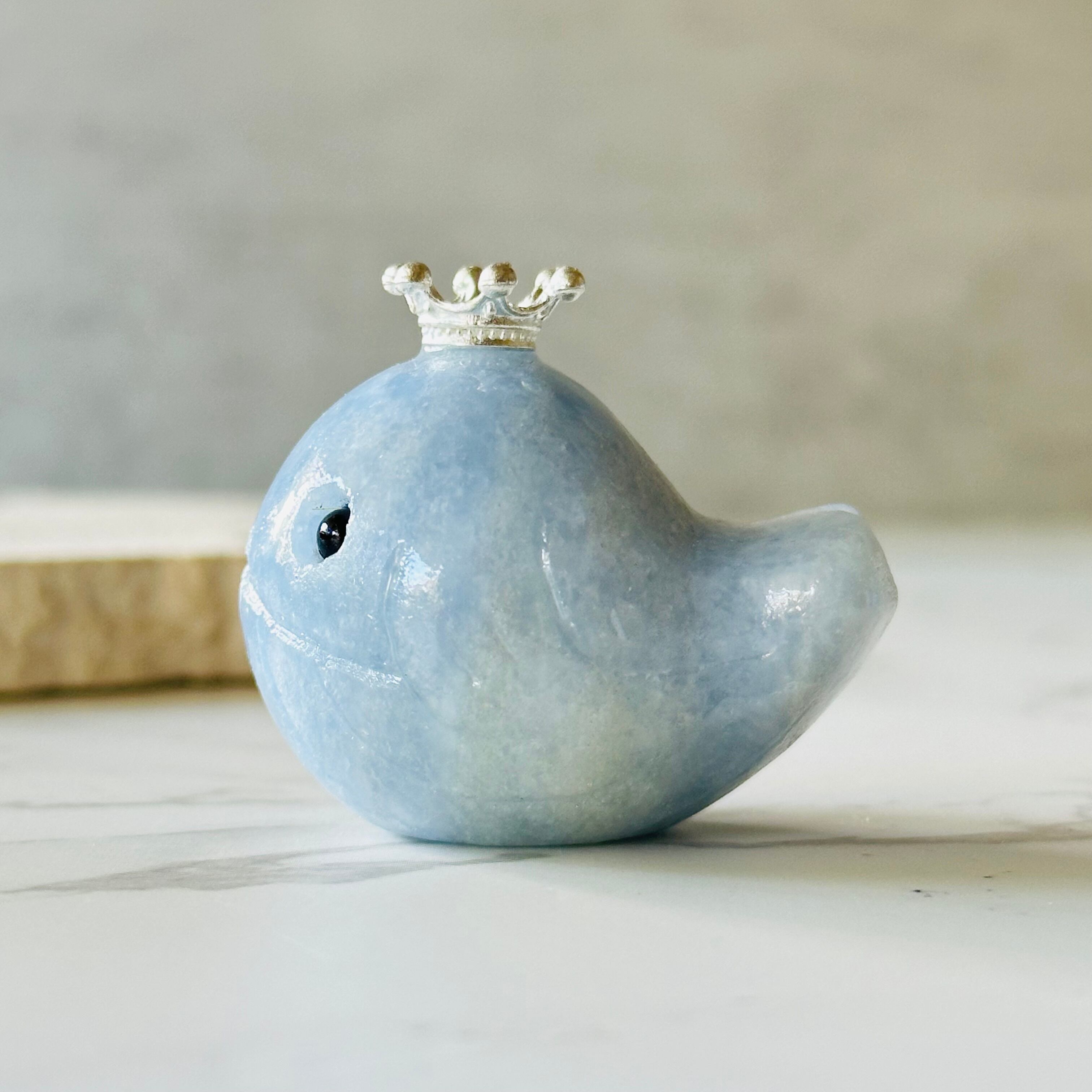 コロンと丸みのある形が可愛らしいセレスタイトのクジラさん。