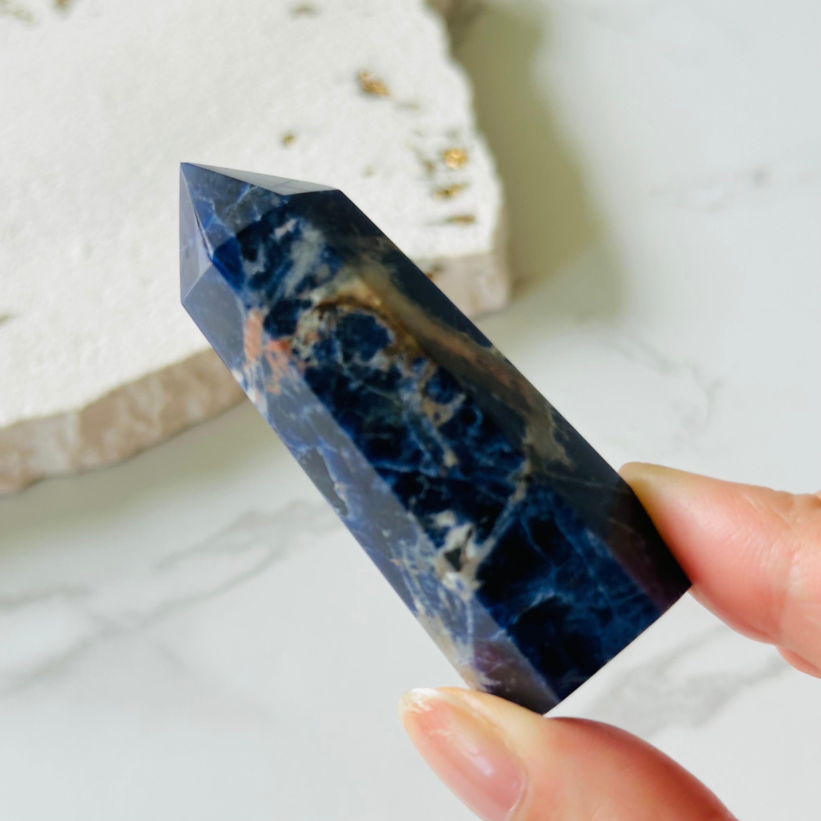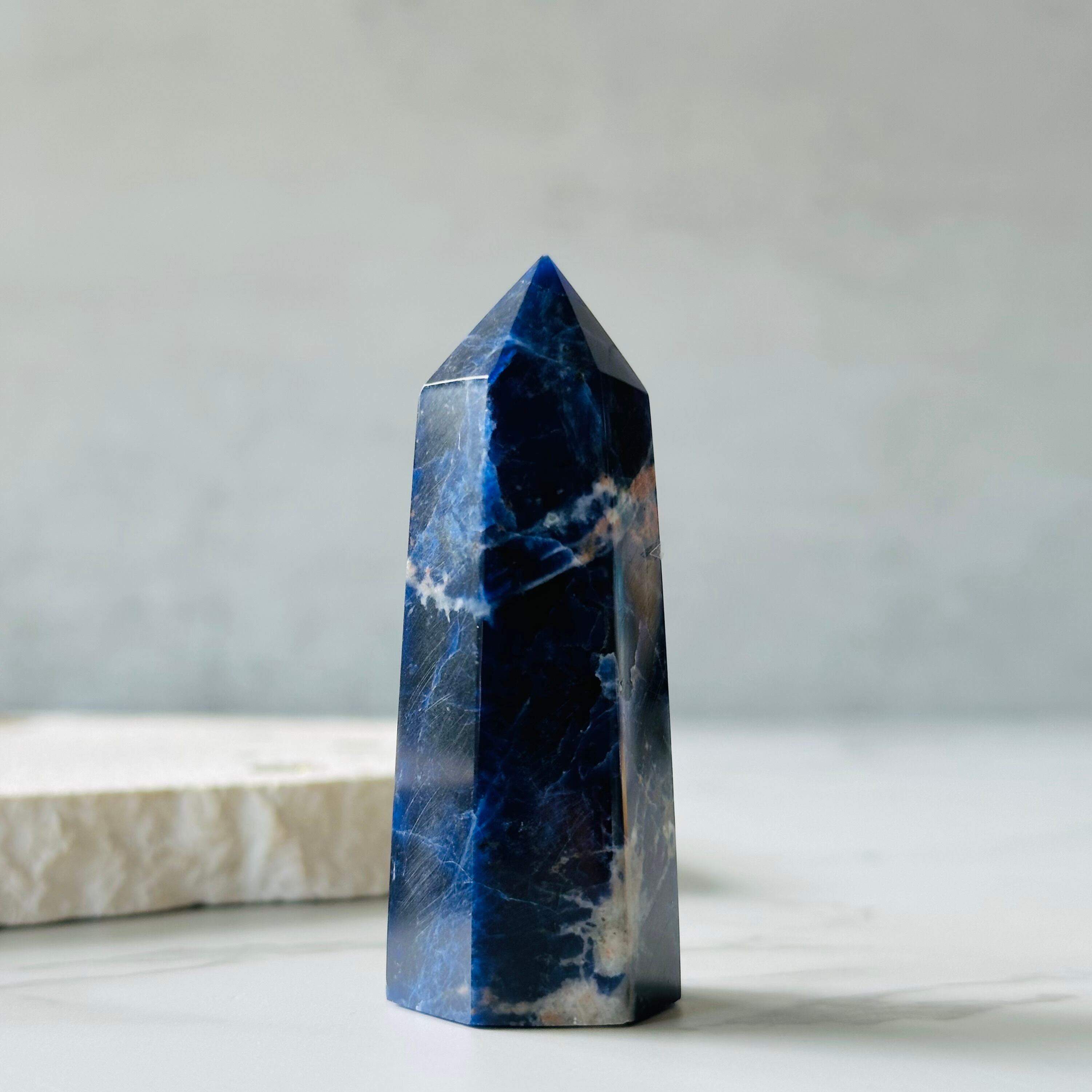 深いネイビーカラーは宇宙や夜空を思わせます。複雑で美しい模様はまるでアートのように美しく、見るものを魅了します。思慮深く神秘的な佇まいで、自己と深く繋がりたい時、内なる自己の声を聞きたい時にそばにおくと良いように思います。瞑想をされる方、ハイヤーセルフと繋がりたい方にお勧めします。
