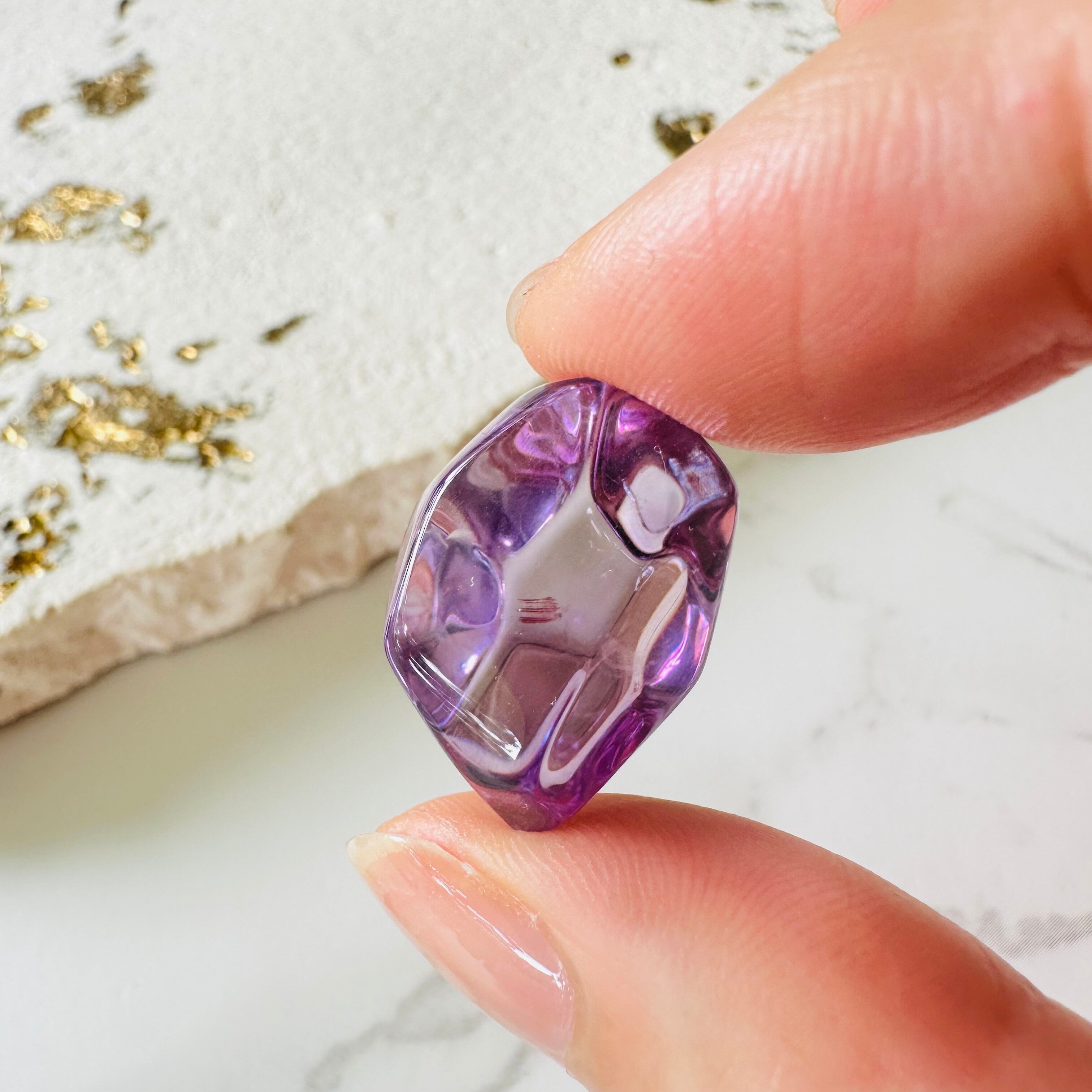 一粒アメジストのルースです。高い透明度でキラキラと光を放ち、時間を忘れて見惚れてしまいます。ペンダントトップ等にして身につけていただきたいアイテムです。