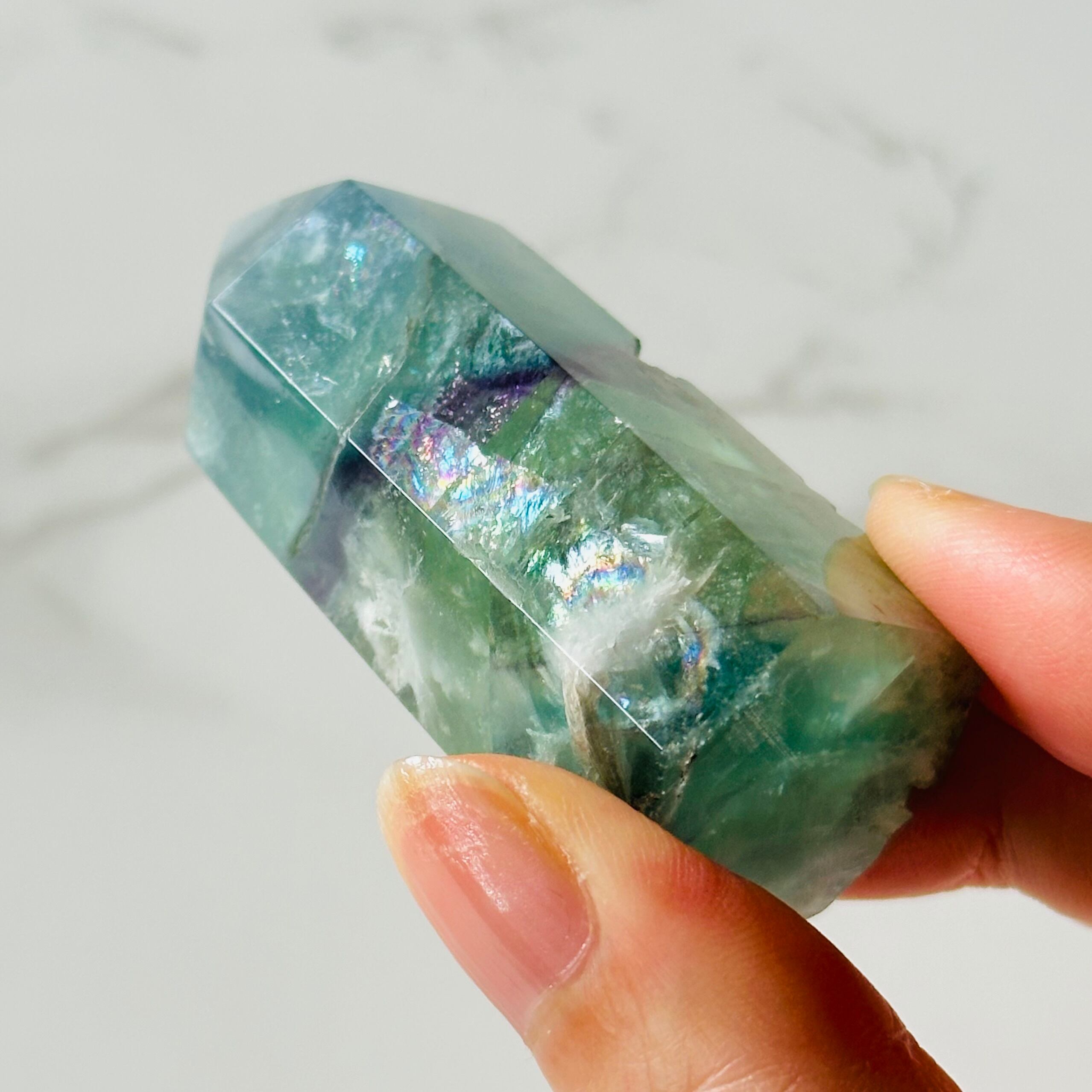 エメラルドグリーンのエンジェルフェザーフローライトタワーです。